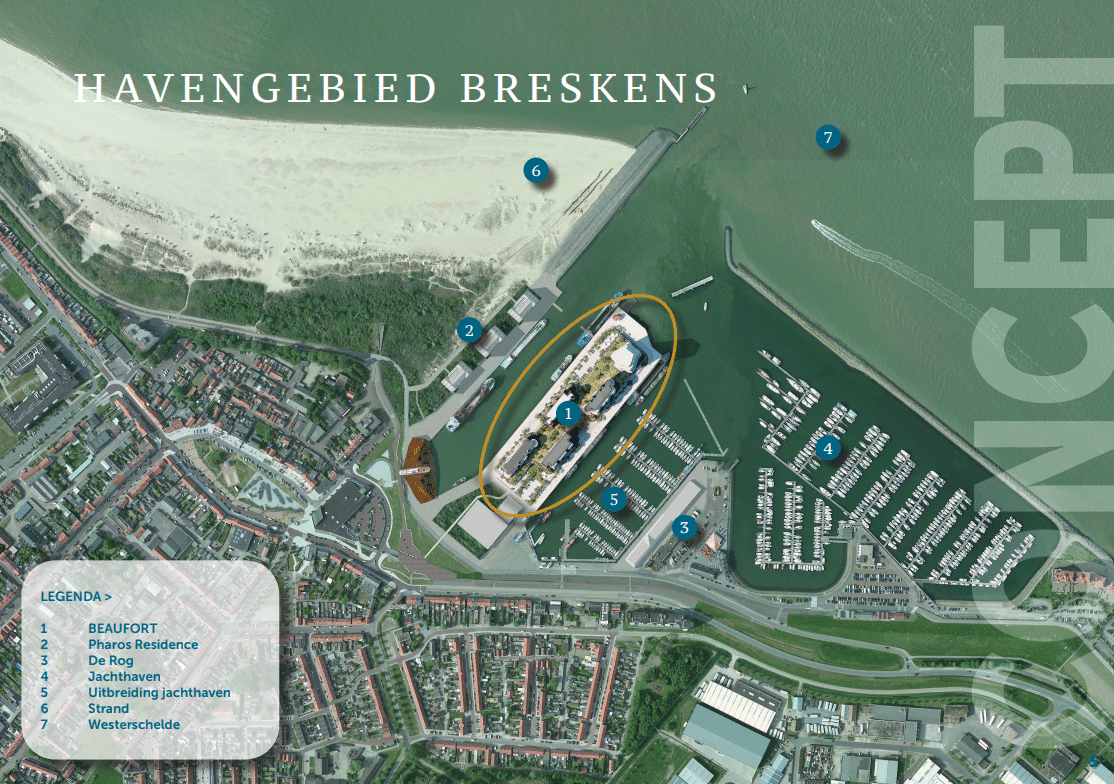Die erste Phase der Umstrukturierung des Hafengebietes in Breskens betrifft die Realisierung des Projekts Pharos Residence mit insgesamt 159 Wohnungen auf dem Westhavendam, die inzwischen alle verkauft sind.
