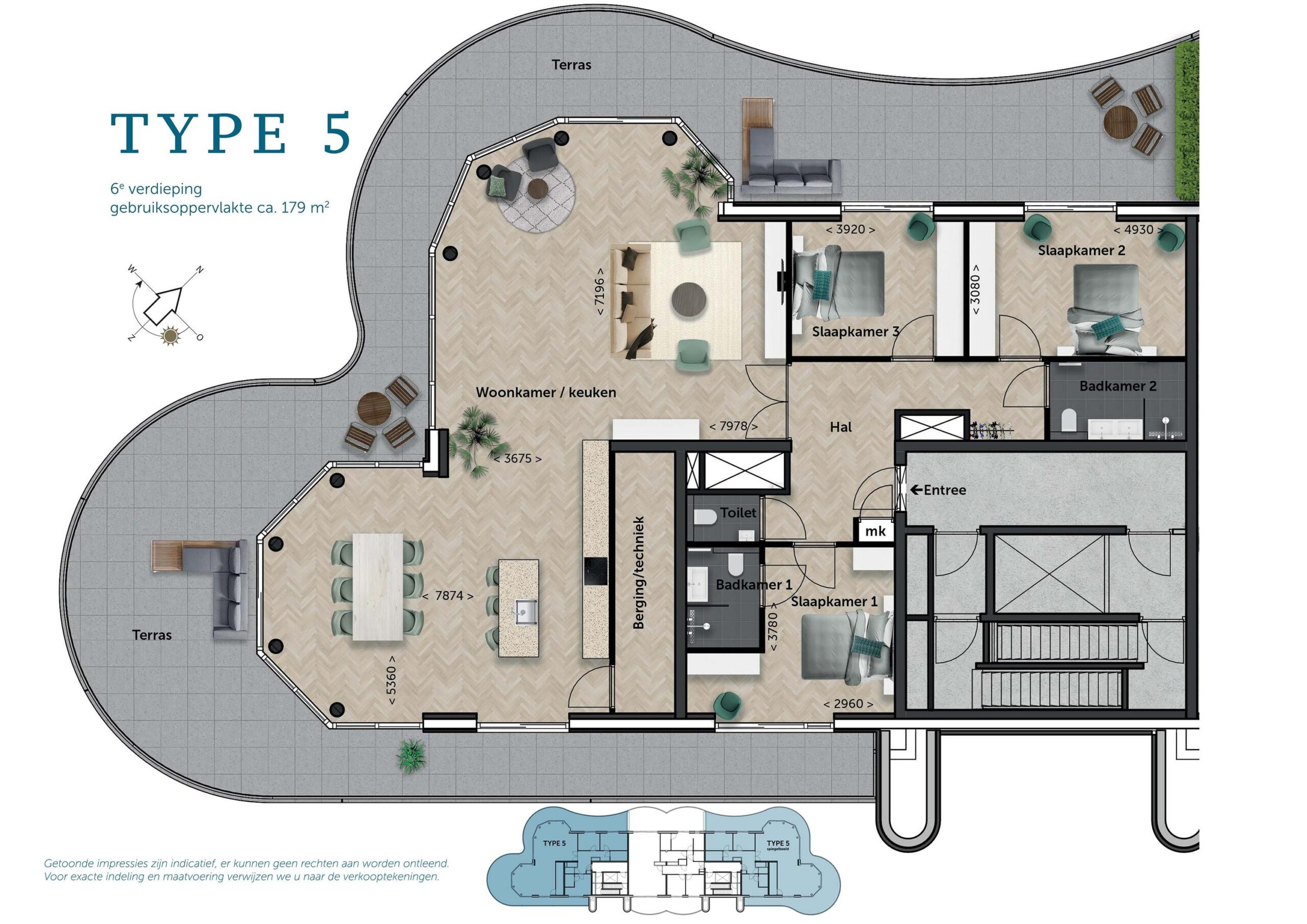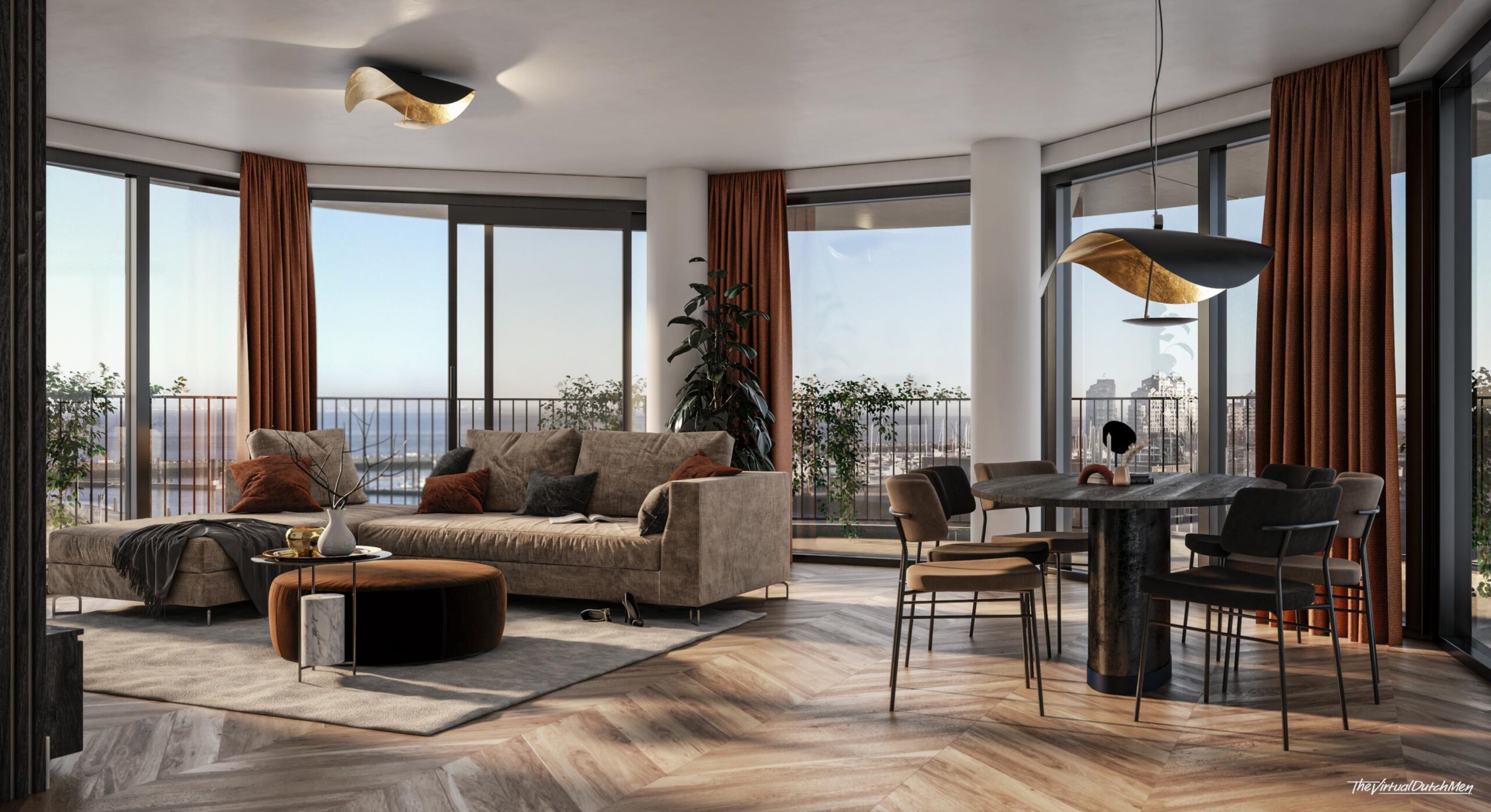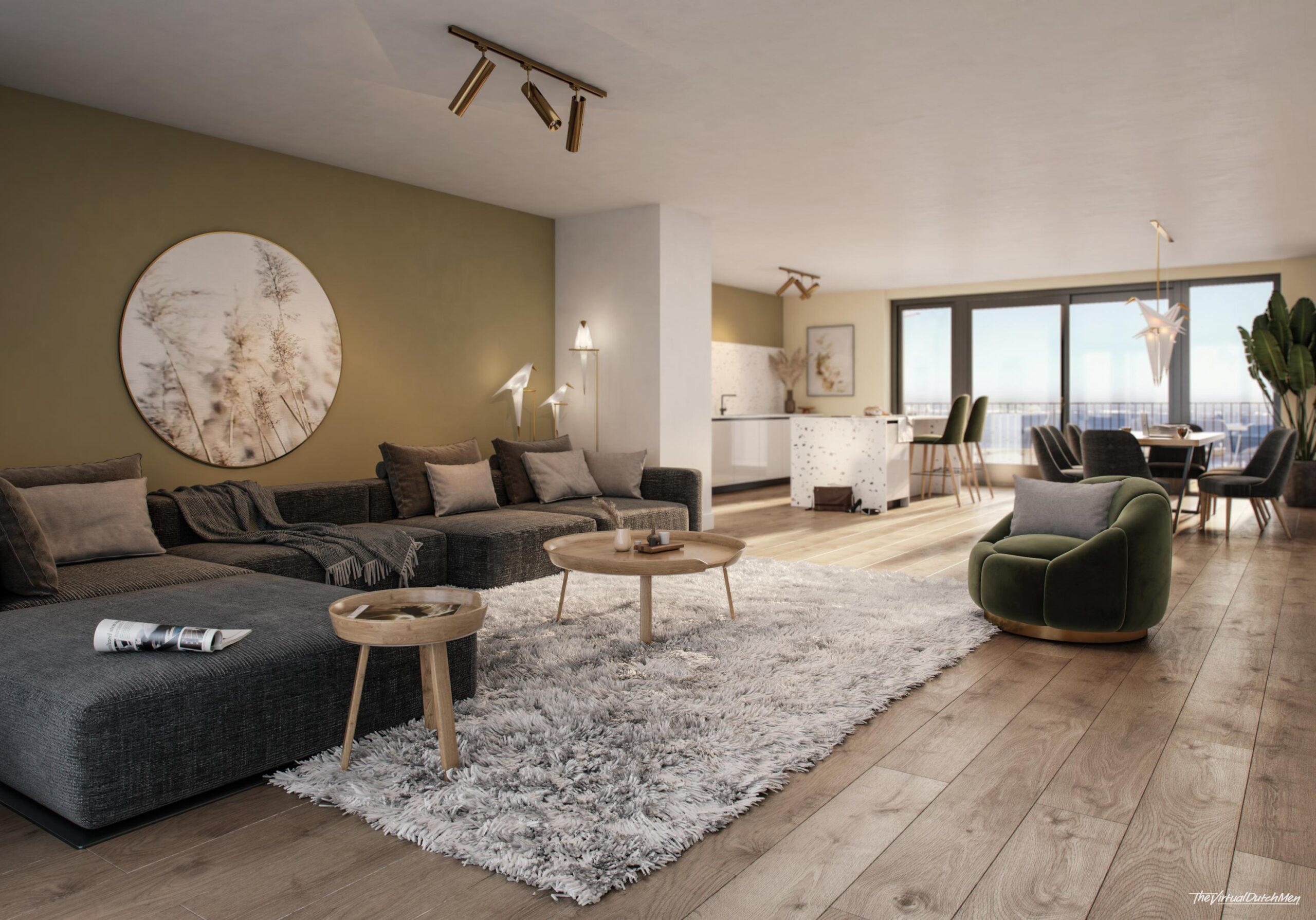 Von 3-Zimmer-Wohnungen mit ca. 94 m2 bis zu geräumigen Penthäusern mit ca. 179 m2. Für jeden etwas. Jede Wohnung verfügt über raumhohe Fenster, die viel Tageslicht hereinlassen und den Panoramablick über Land und Meer ermöglichen. Außergewöhnlich ist auch die Größe des Außenbereichs: Einerseits gibt es einen ungehinderten Blick auf den ehemaligen Handelshafen und die Westerschelde, andererseits eine grüne, parkähnliche Umgebung am Middenhavendam. Darüber hinaus verfügt jede Wohnung über einen eigenen großzügigen Außenbereich in Form eines großen Balkons oder einer Terrasse.