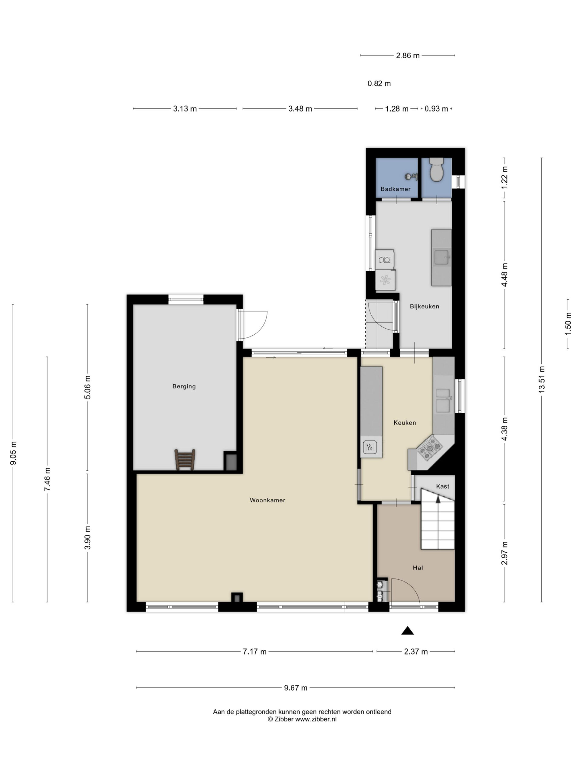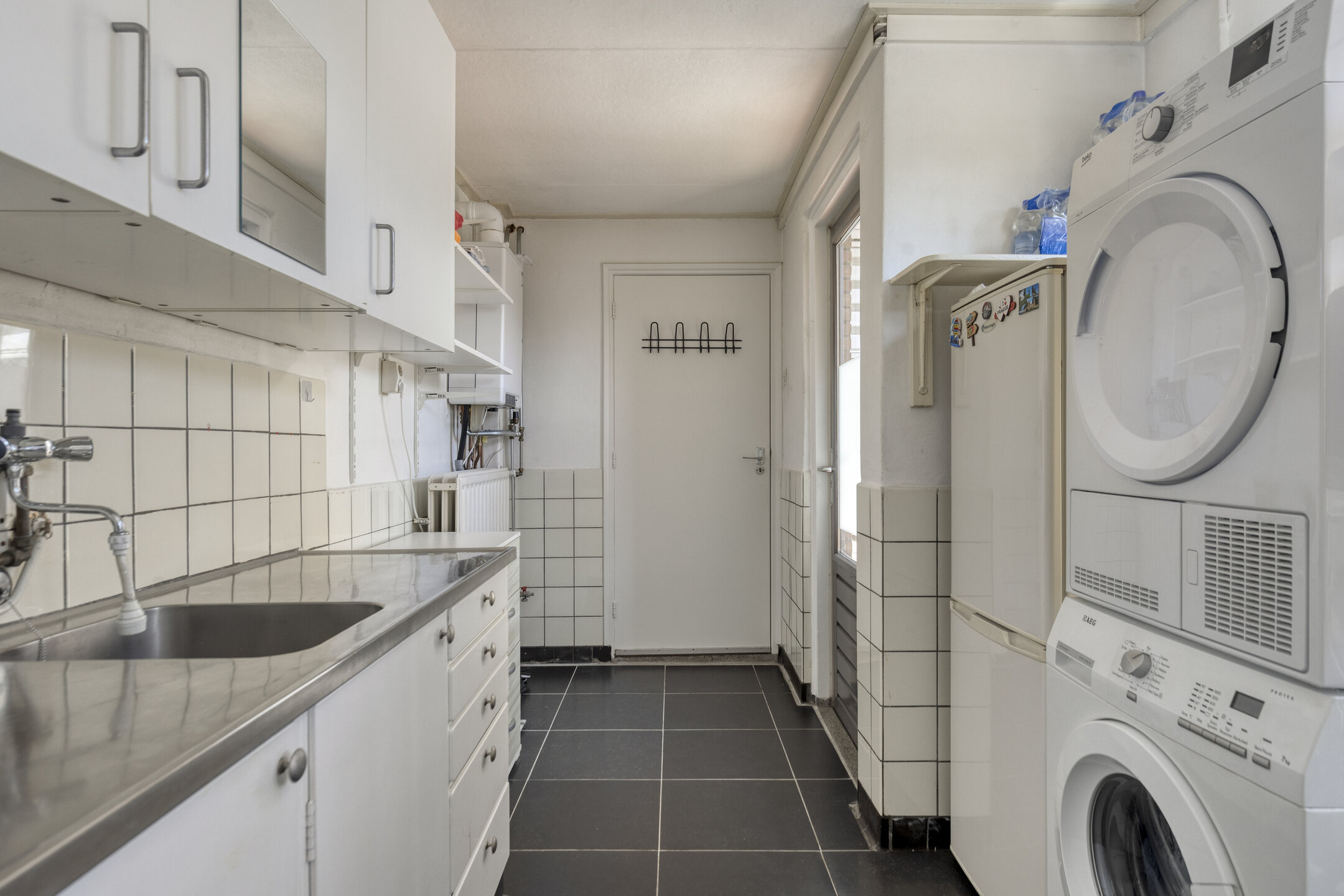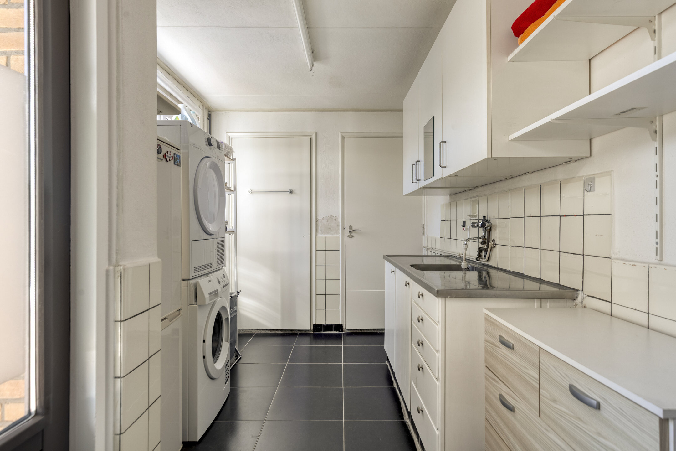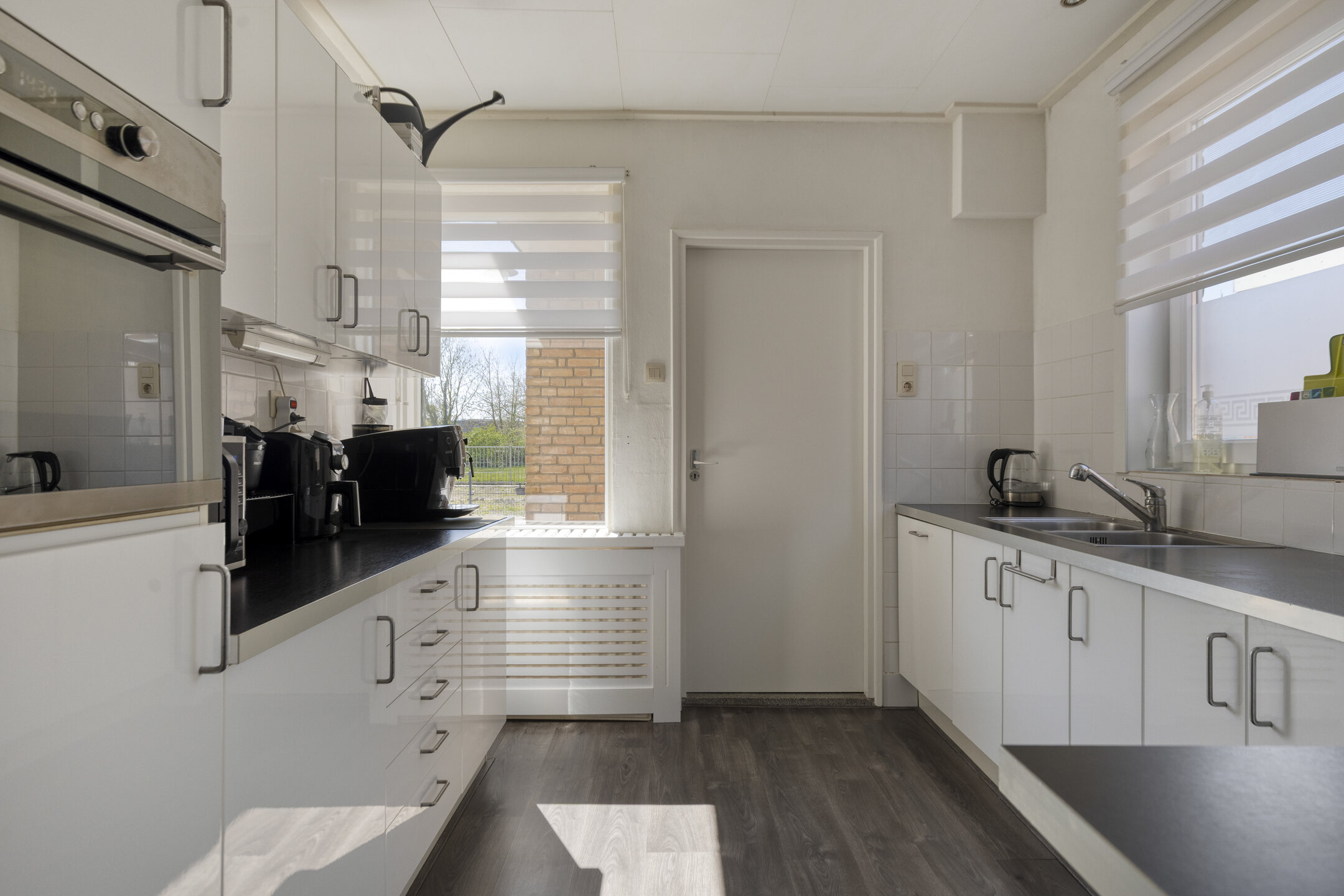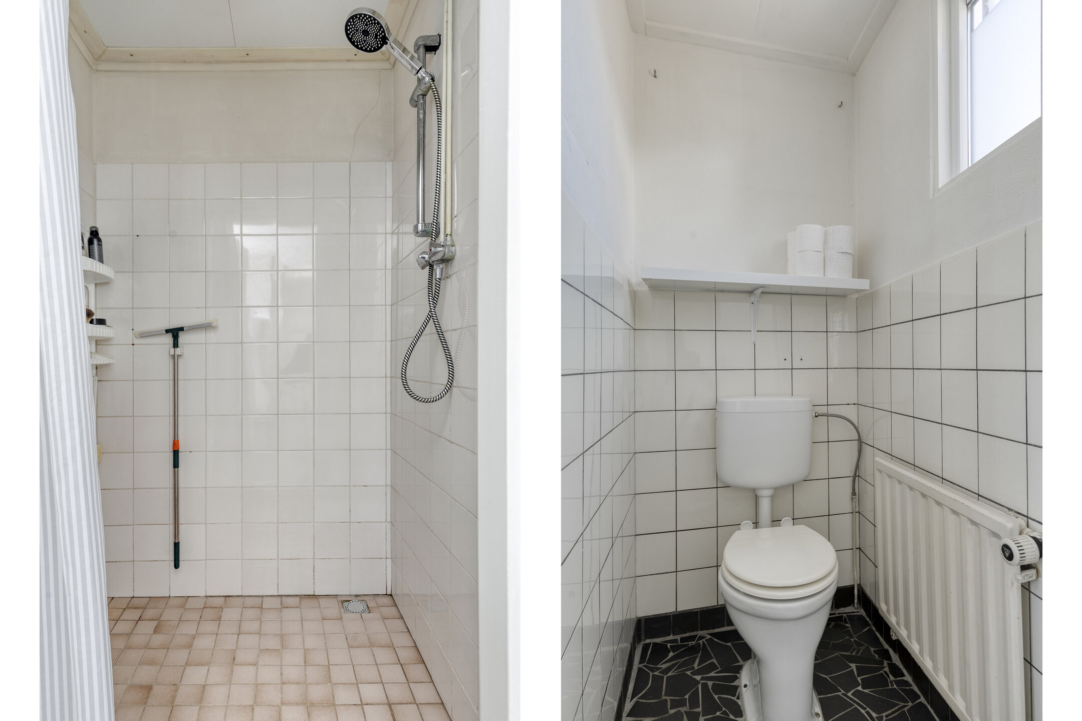 Vanuit de keuken bereikt u verder de bijkeuken. Hier bevindt zich een extra keukenblok met voldoende opbergruimte. Tevens heeft u vanuit de bijkeuken toegang tot een aparte toiletruimte en een extra douche.