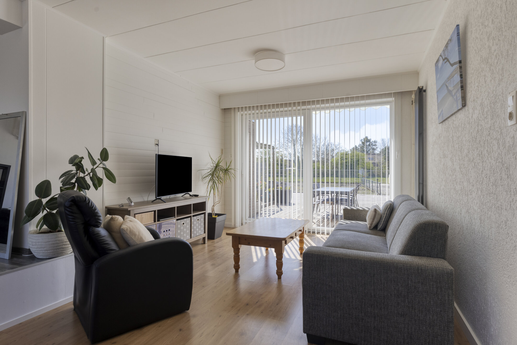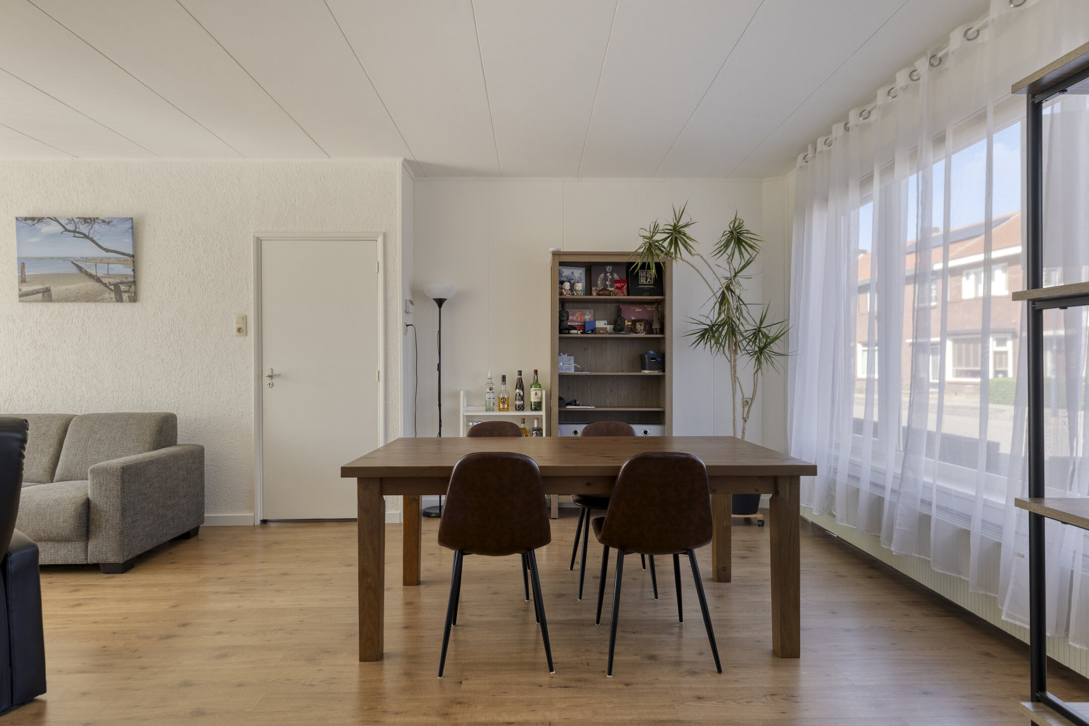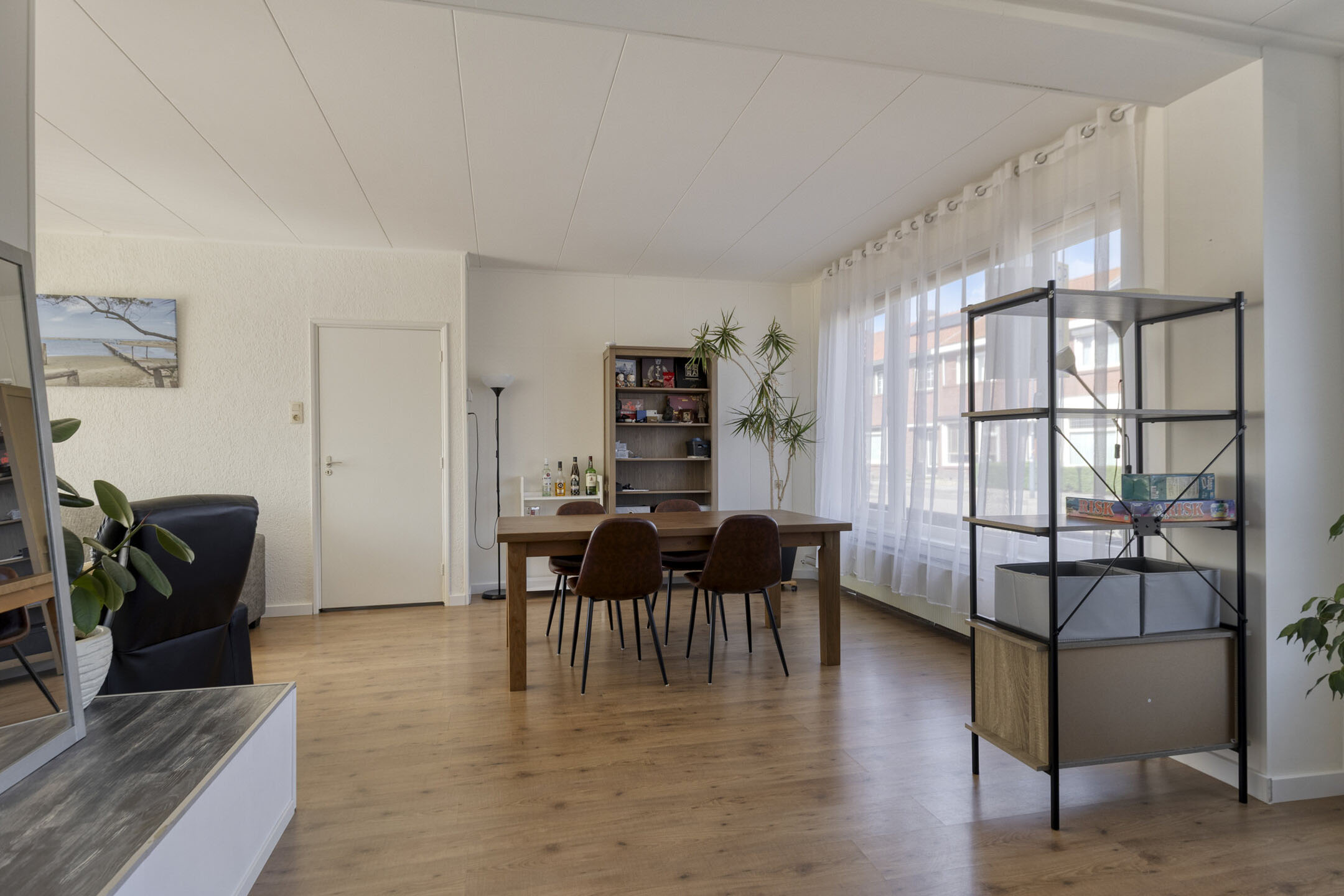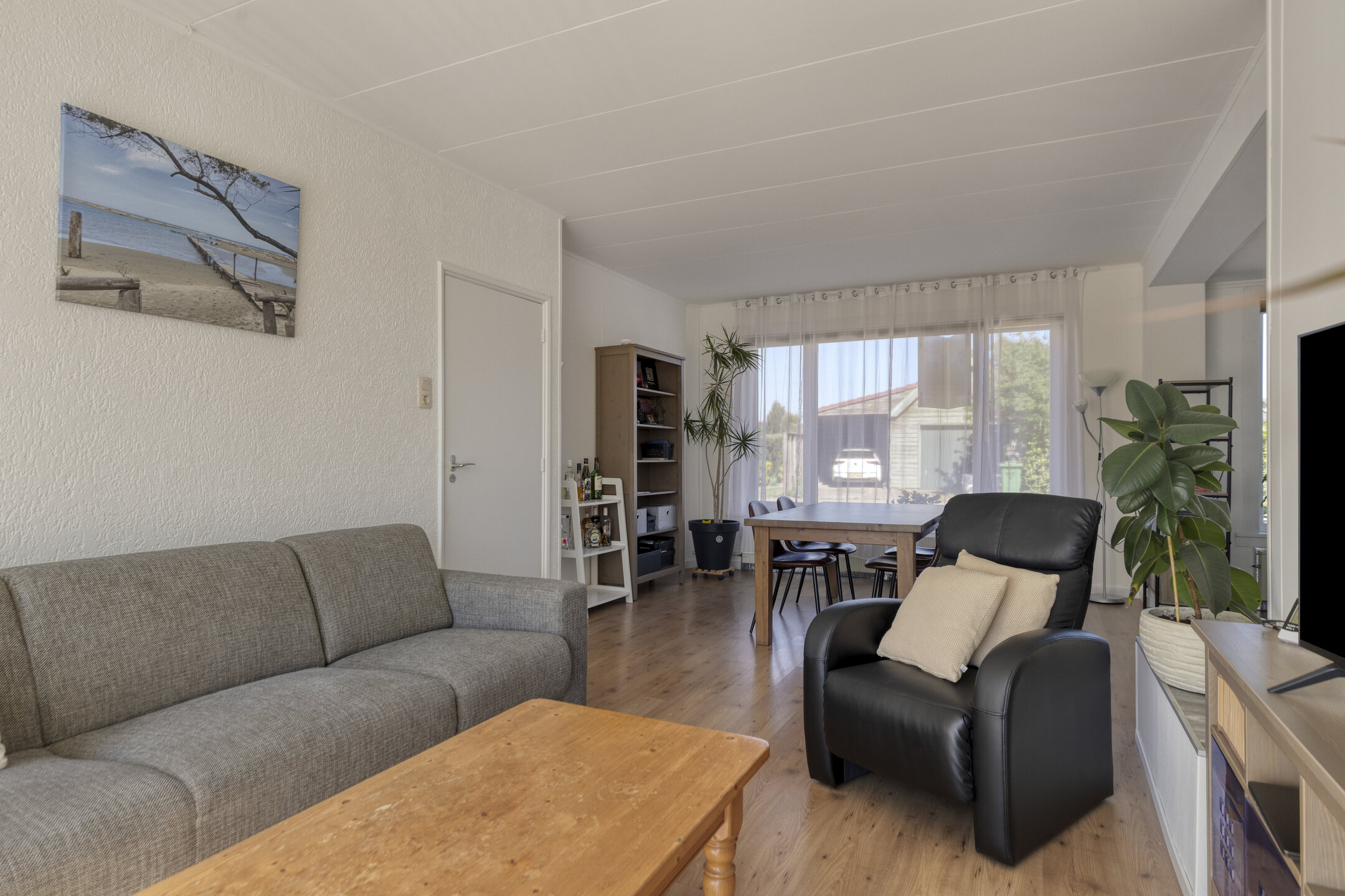 De ruime L-vormige woonkamer staat in halfopen verbinding met de keuken en kenmerkt zich door veel lichtinval. Dankzij de schuifpui heeft u direct toegang tot de tuin. Daarnaast is de woonkamer voorzien van airconditioning.