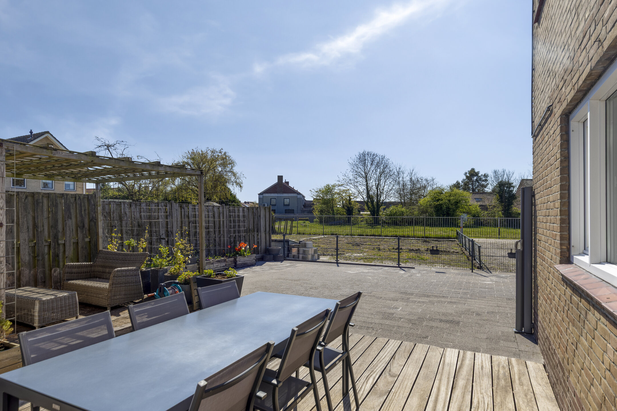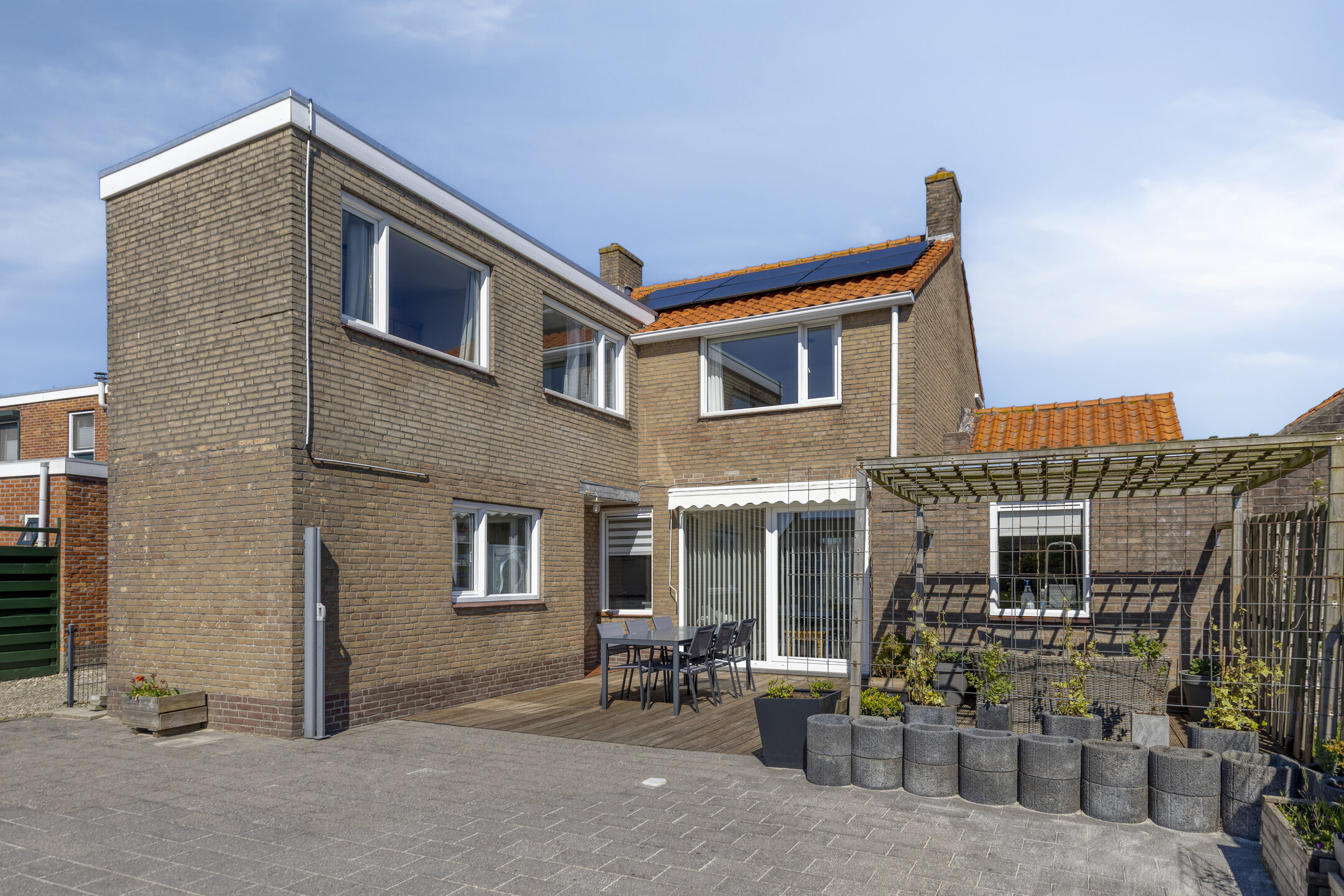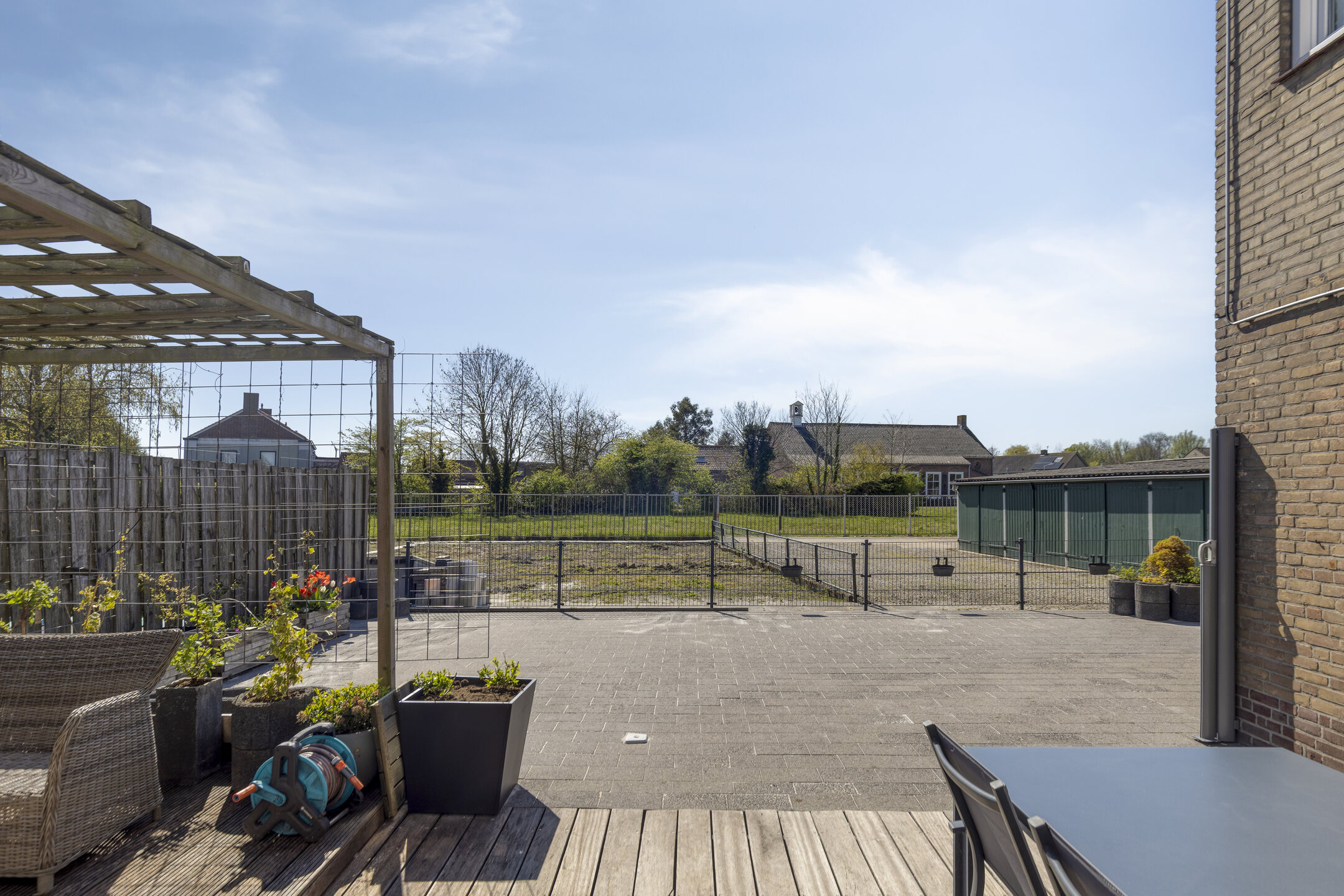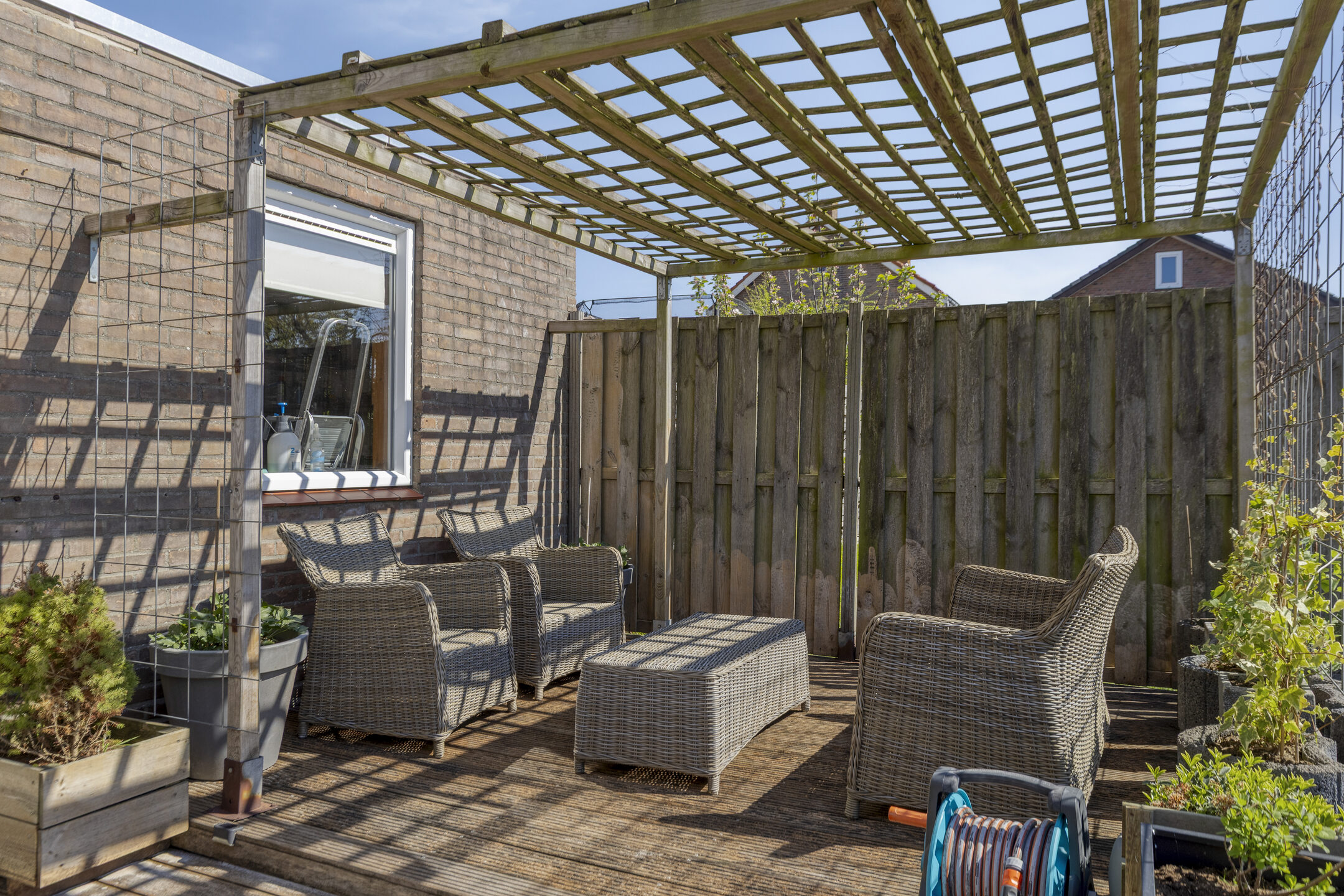 Via de schuifpui en de achterdeur bereikt u de achtertuin. Deze ruime, onderhoudsvriendelijke tuin is gelegen op het zuidwesten. De tuin beschikt over een groot terras met pergola, ideaal voor het creëren van een comfortabele zit- en/of eethoek. De achtertuin is volledig omheind en biedt tevens toegang tot de voortuin. Vanuit de tuin bereikt u ook de schuur, wat zorgt voor extra opbergruimte.