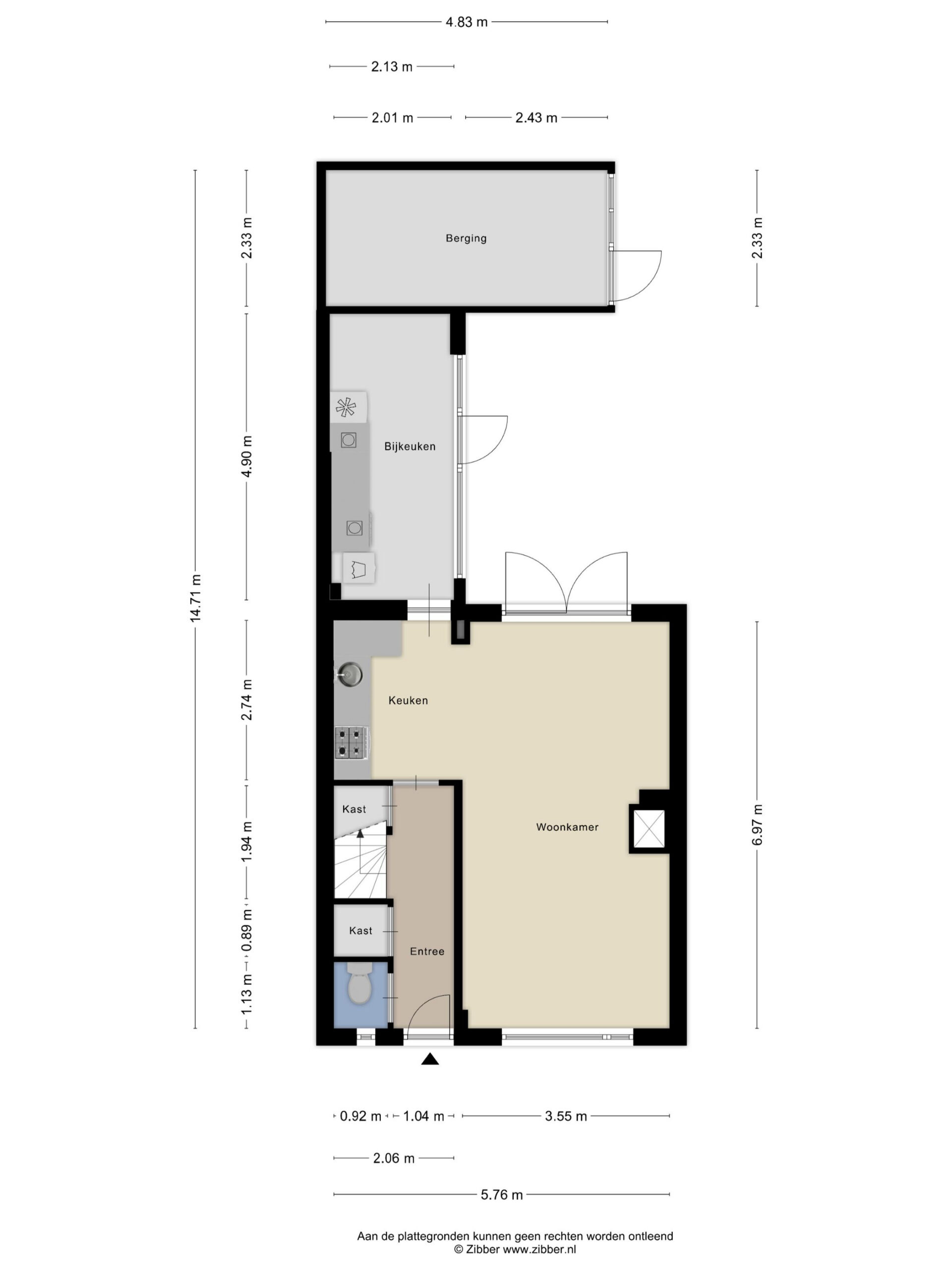 * bijkeuken met wasmachineaansluiting;