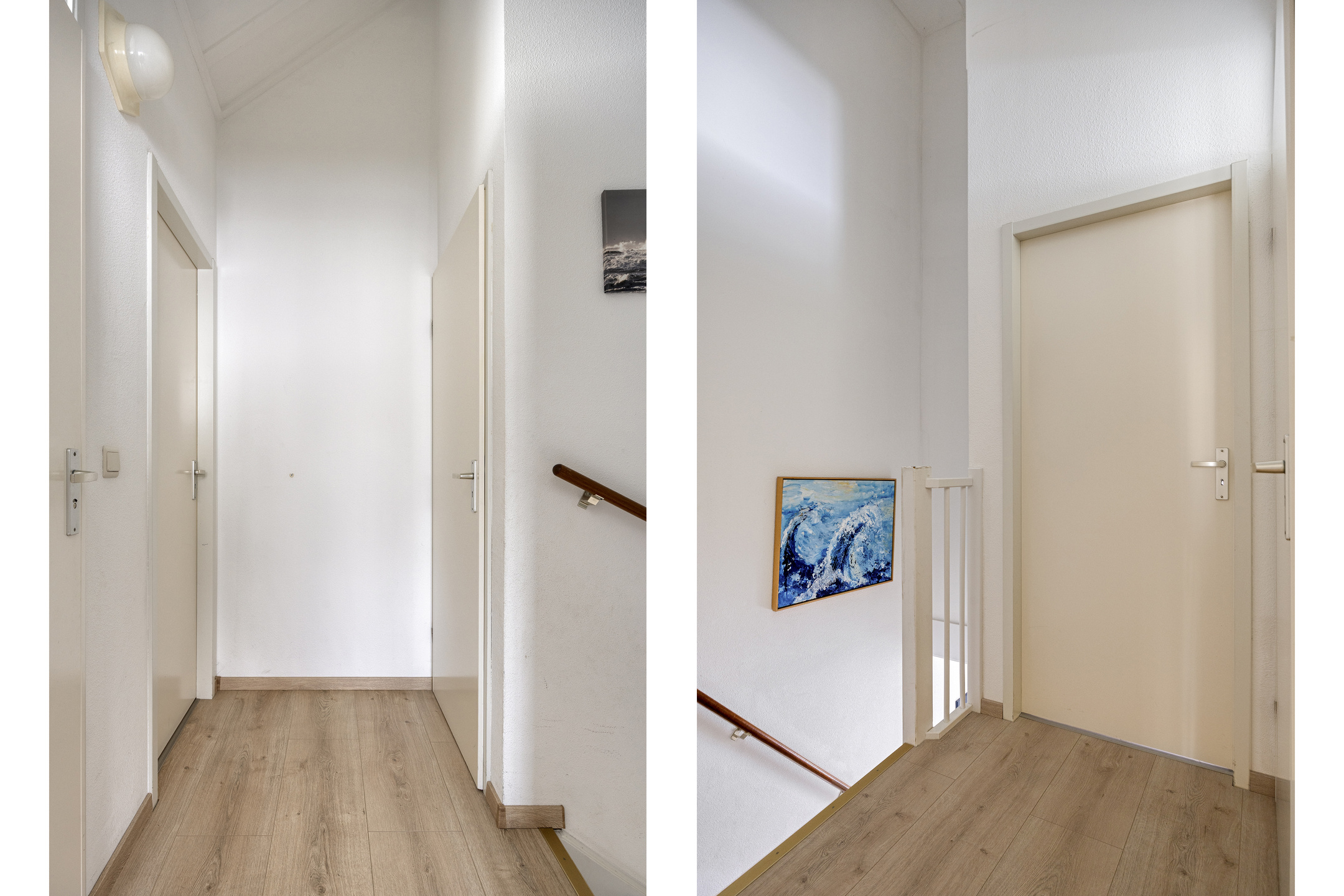 Das Obergeschoss verfügt über einen geräumigen Flur, der Zugang zu drei komfortablen Schlafzimmern bietet, in denen zusätzliche Steckdosen neben den Betten für zusätzlichen Komfort sorgen. Das Badezimmer ist komplett mit Dusche, Waschbecken und Toilette ausgestattet. Das gesamte Obergeschoss (mit Ausnahme des Badezimmers) wurde kürzlich mit stilvollem Laminatboden ausgestattet.