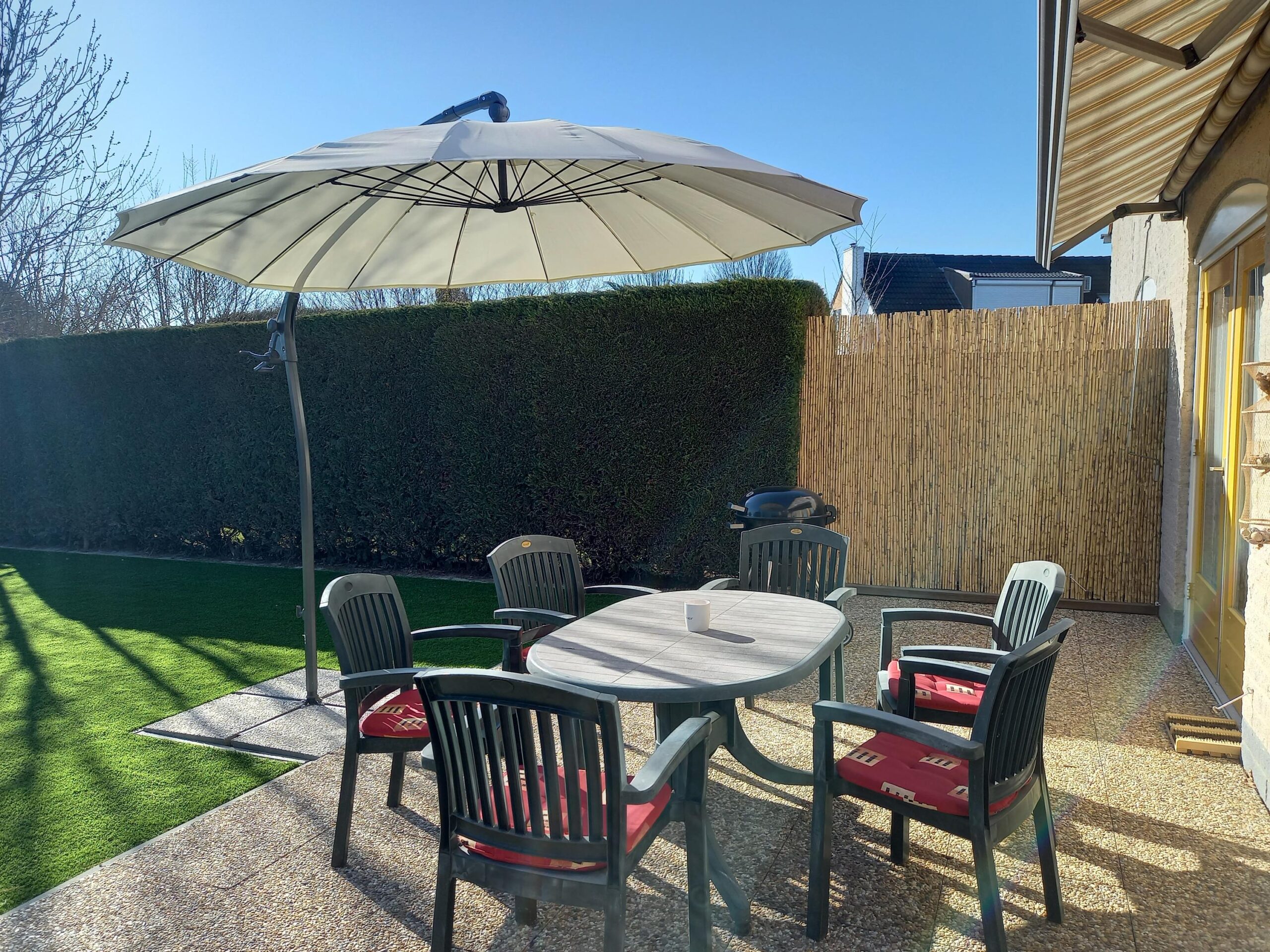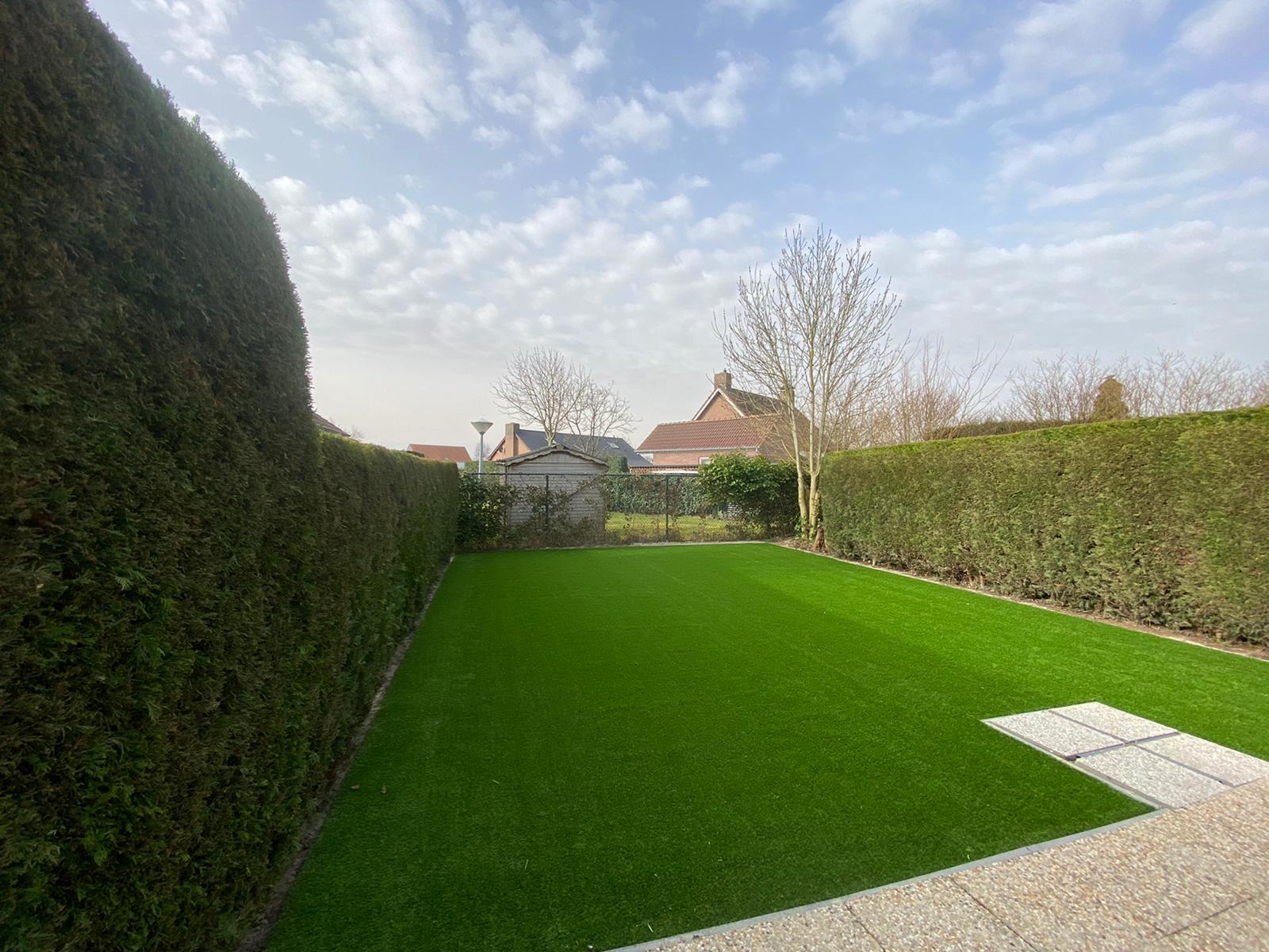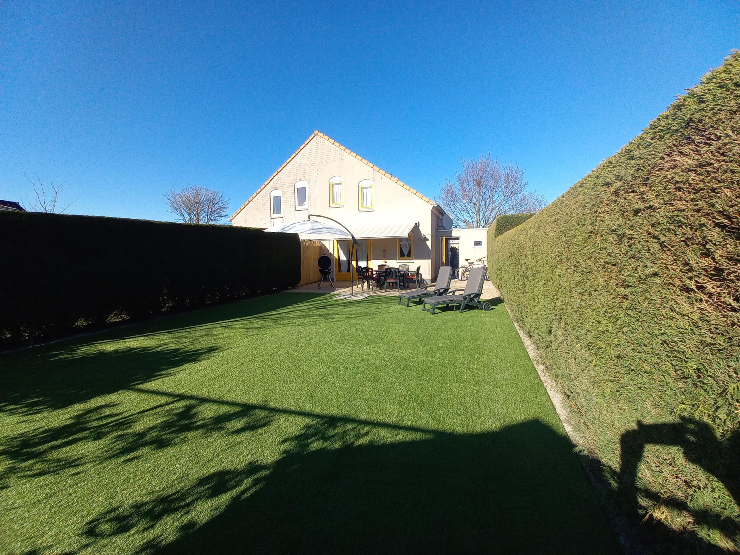 Der sonnige, umzäunte und pflegeleichte Garten in Südwestlage ist ein wunderbarer Ort zum Entspannen. Der Garten ist über den Abstellraum und die Terrassentüren im Wohnzimmer zugänglich und verfügt außerdem über einen Hintereingang über ein Gartentor. Die großzügige Terrasse bietet viel Platz für eine gemütliche Sitz- oder Essecke und ist mit einer Außenmarkise ausgestattet. Der Garten verfügt über eine Drainage sowohl unter der Terrasse als auch unter dem Kunstrasen und ist dank der Verlegung von Kunstrasen pflegeleicht. Darüber hinaus verfügt das Haus über zwei eigene Parkplätze.