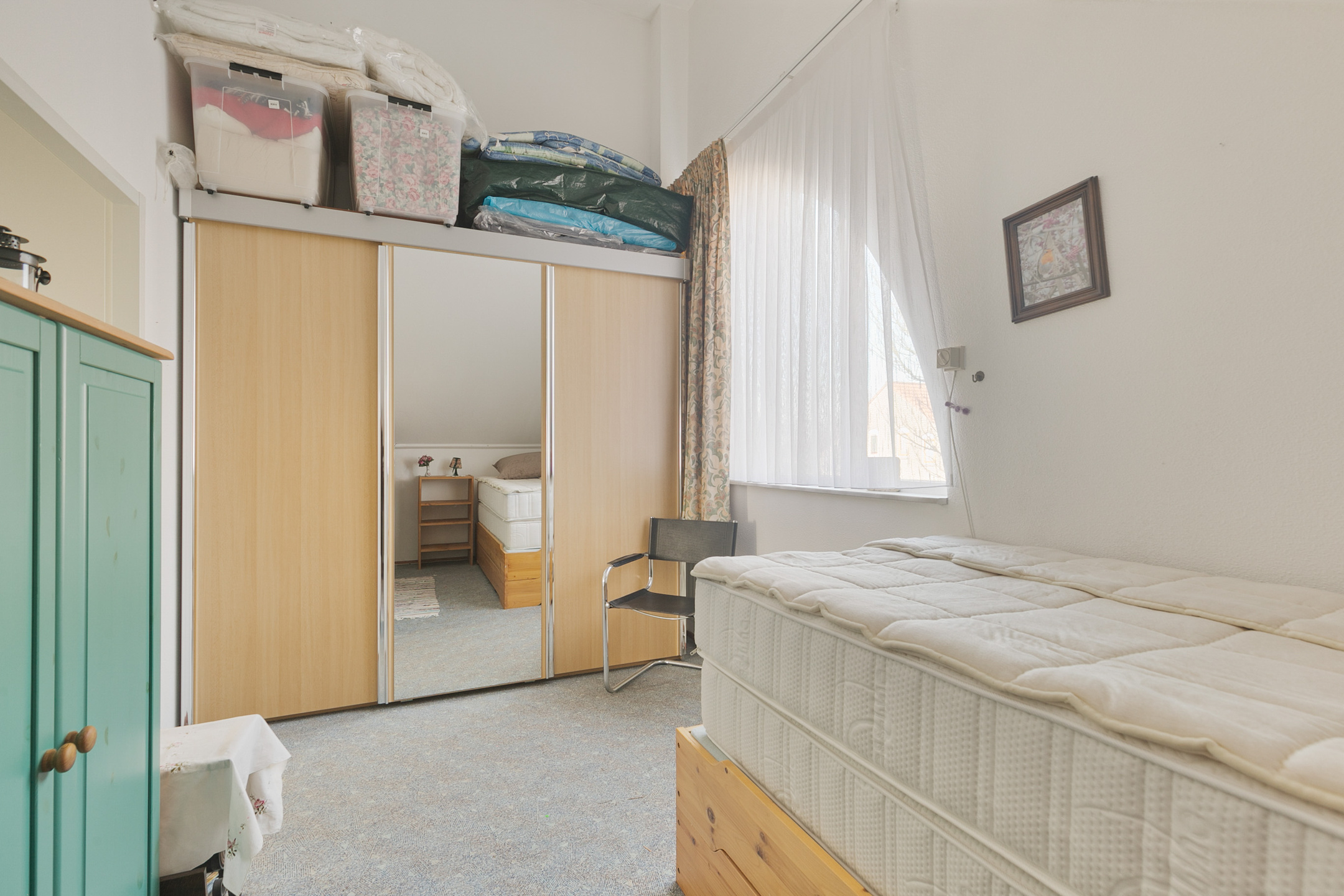 Im ersten Stock gibt es einen großzügigen Treppenabsatz, der Zugang zu zwei komfortablen Schlafzimmern und einem kompletten Badezimmer bietet. Das Badezimmer ist mit einer begehbaren Dusche, einem Waschbeckenschrank, einer zweiten Toilette und einem Anschluss für die Waschmaschine ausgestattet.