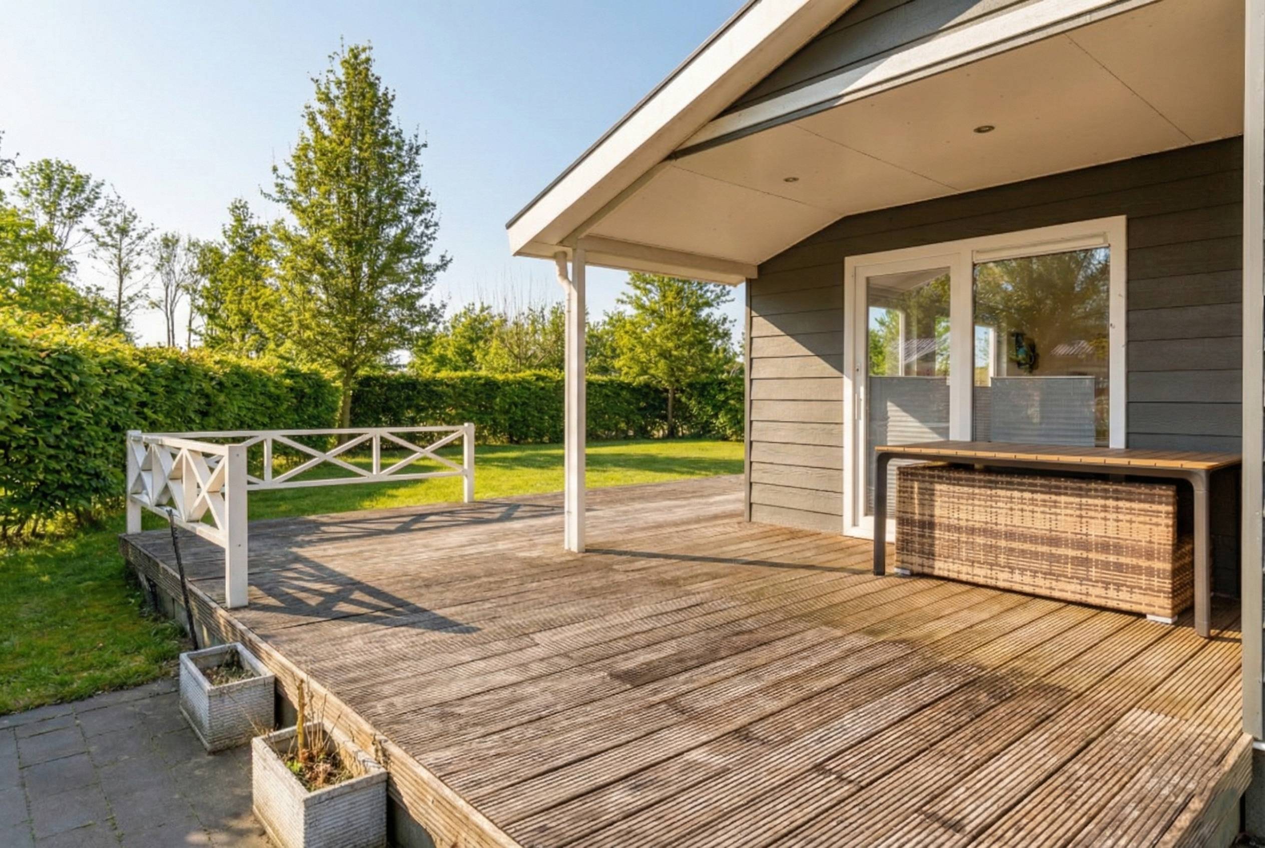 Der Bungalow ist von einem großzügigen Garten umgeben, mit einer schön angelegten Veranda, die zum Leben im Freien einlädt. Der Garten bietet viele Möglichkeiten, eine gemütliche Sitz- und Essecke einzurichten, ideal zum Entspannen oder für ein schönes Abendessen im Freien. An der Vorderseite des Bungalows befindet sich ein Gartenhaus, das sowohl mit Wasser als auch mit Strom ausgestattet ist. Außerdem gibt es einen Parkplatz auf dem Grundstück.