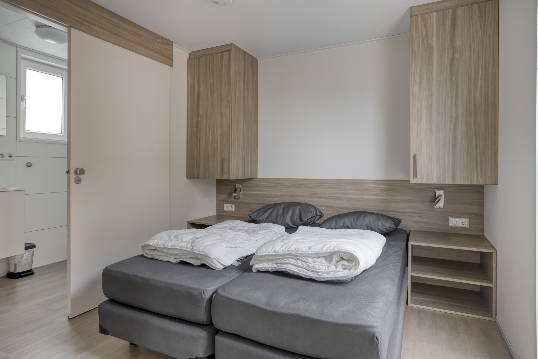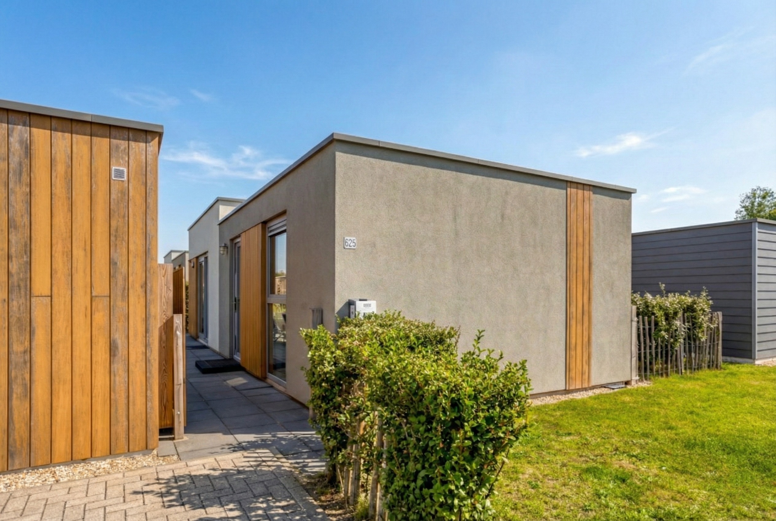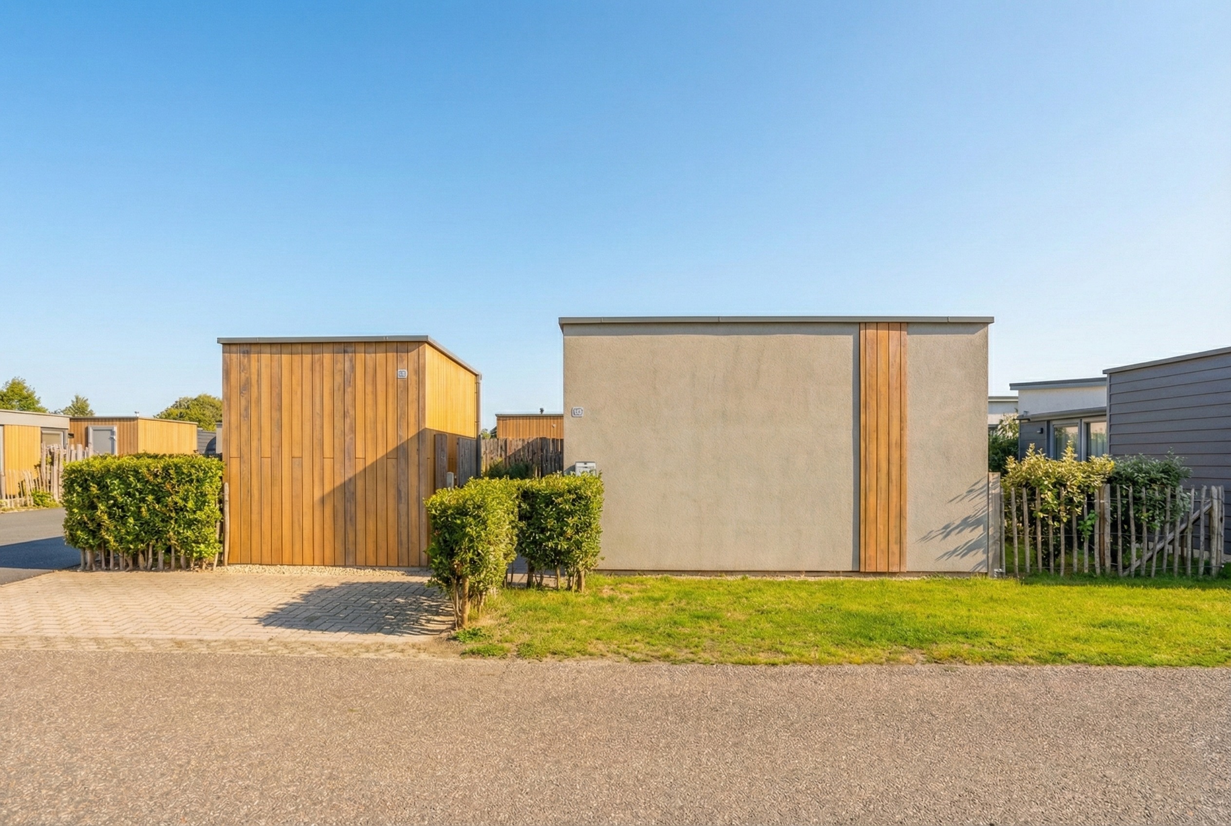 Im Ferienpark Zeebad in Breskens, nur wenige Gehminuten vom weitläufigen Strand und den Dünen entfernt, bieten wir Ihnen diese moderne, freistehende Lodge auf eigenem Grundstück an. Das Haus steht auf einem 229m² großen Grundstück und verfügt über ein helles, geräumiges Wohnzimmer, zwei Schlafzimmer mit Einbauschränken, eine voll ausgestattete Küche und eine sonnige Terrasse mit eigenem Parkplatz inklusive Ladestation.