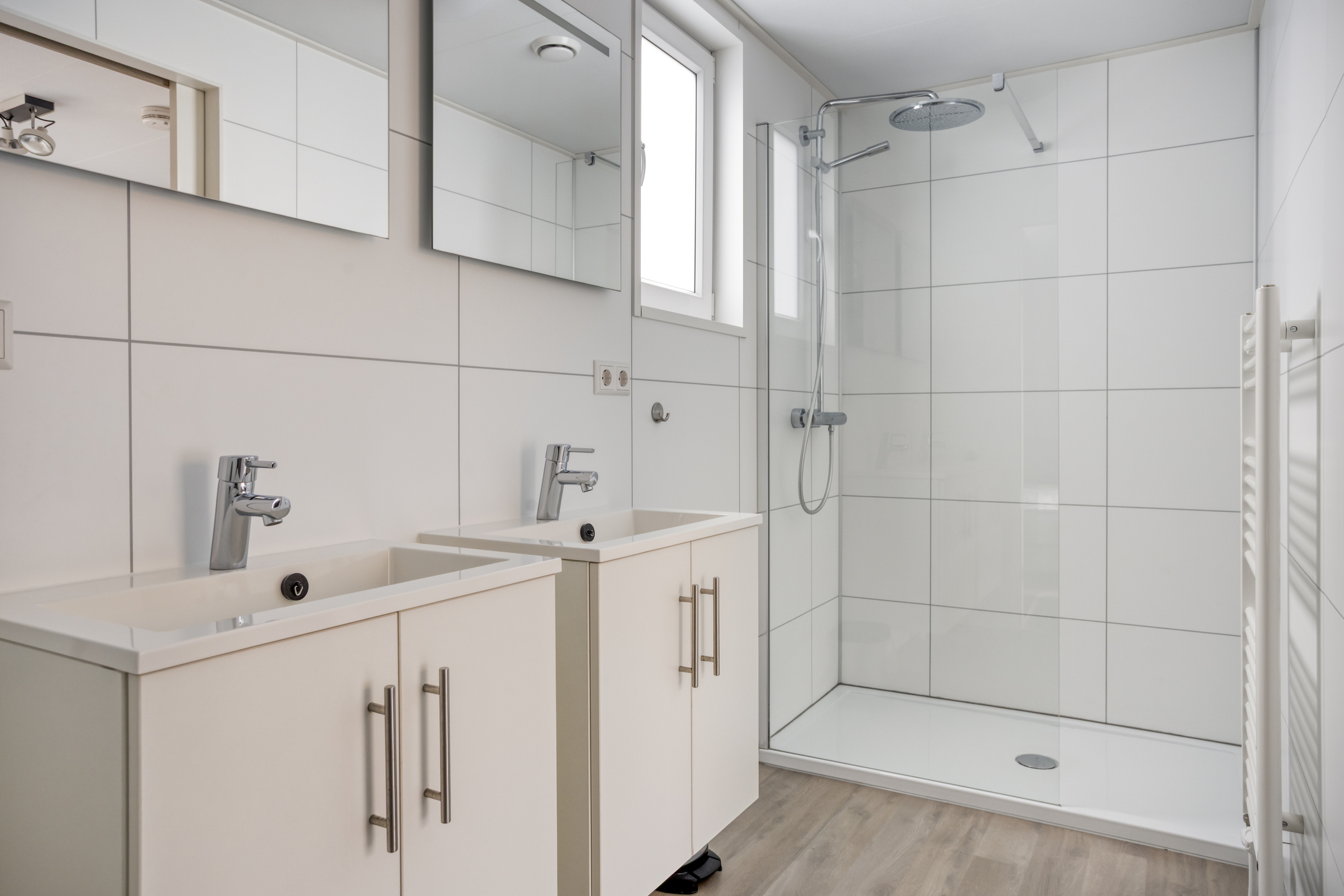 - Badkamervoorzieningen Dubbele wastafel, wastafelmeubel, inloopdouche