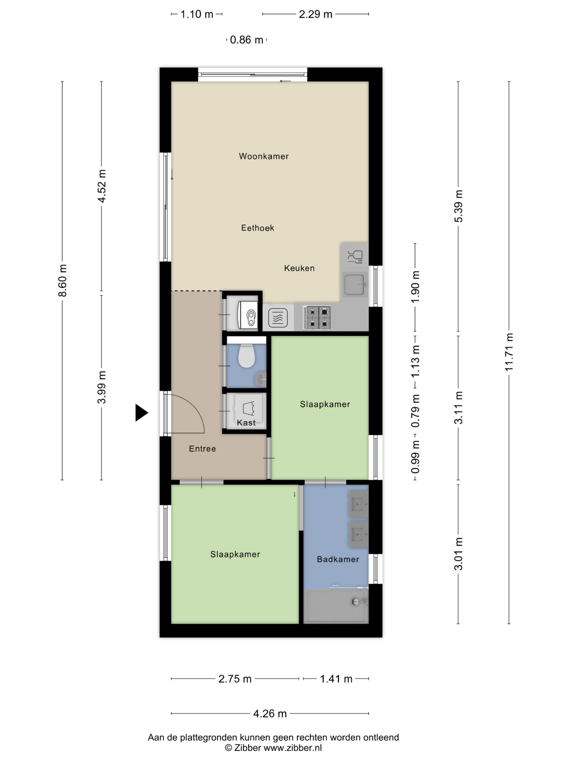 Darüber hinaus verfügt das Haus über zwei Schlafzimmer, ein Badezimmer und ein separates WC. Beide Schlafzimmer sind mit Einbauschränken ausgestattet. Das Badezimmer verfügt über eine ebenerdige Dusche und einen Doppelwaschtisch. Außerdem gibt es einen kleinen Abstellraum mit Waschmaschinenanschluss.