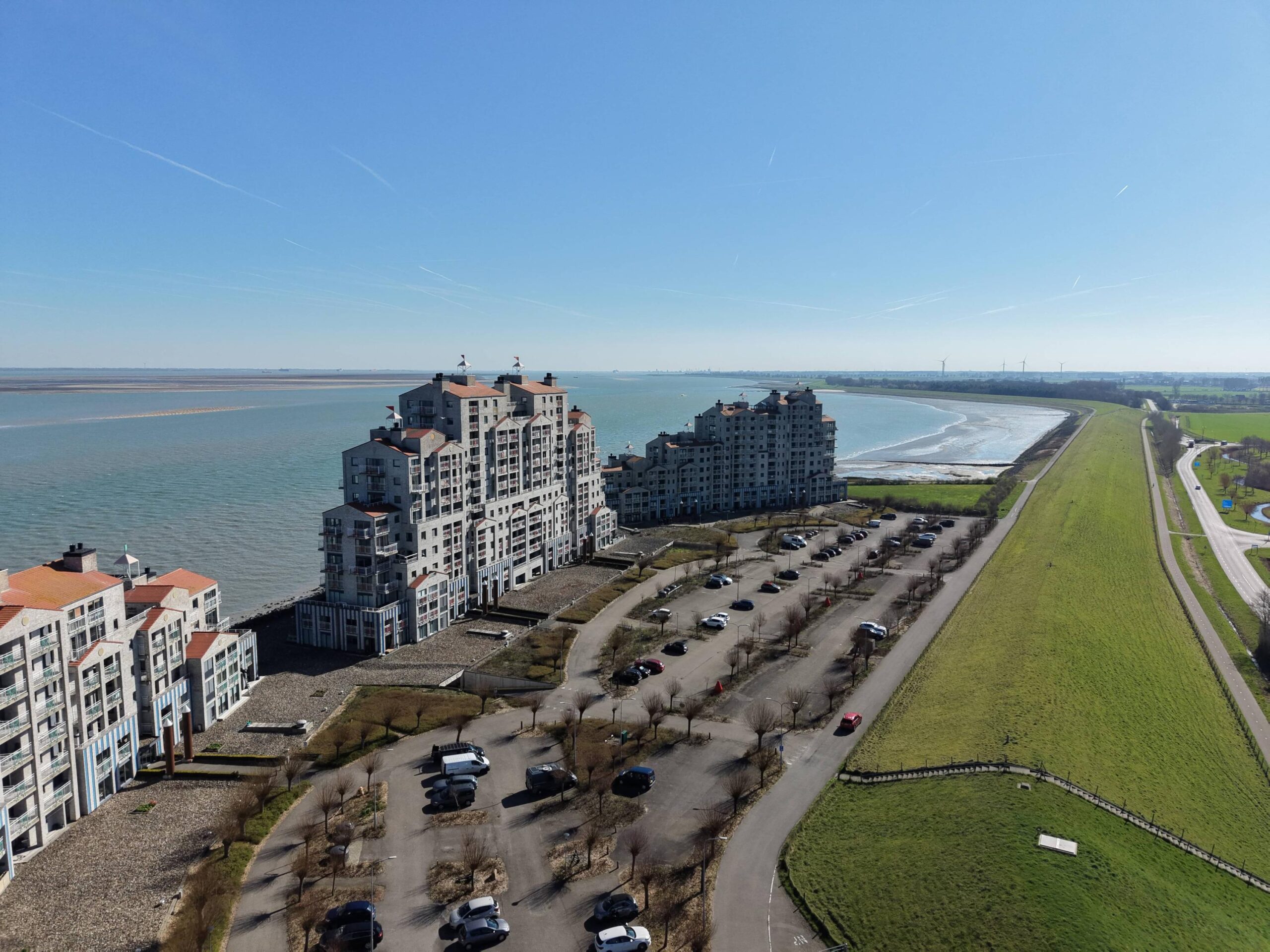 Vom Aufzug aus betreten Sie direkt den Flur der Wohnung, der die Verbindung zu den verschiedenen Wohnbereichen bildet. Das helle und großzügige Wohnzimmer fällt sofort durch die großen Fenster auf, die für viel Tageslicht und einen Panoramablick sorgen. Durch die Schiebetür gelangen Sie auf den Balkon, von dem aus Sie ungestört die beeindruckende Aussicht über die Westerschelde und die Landschaft genießen können.