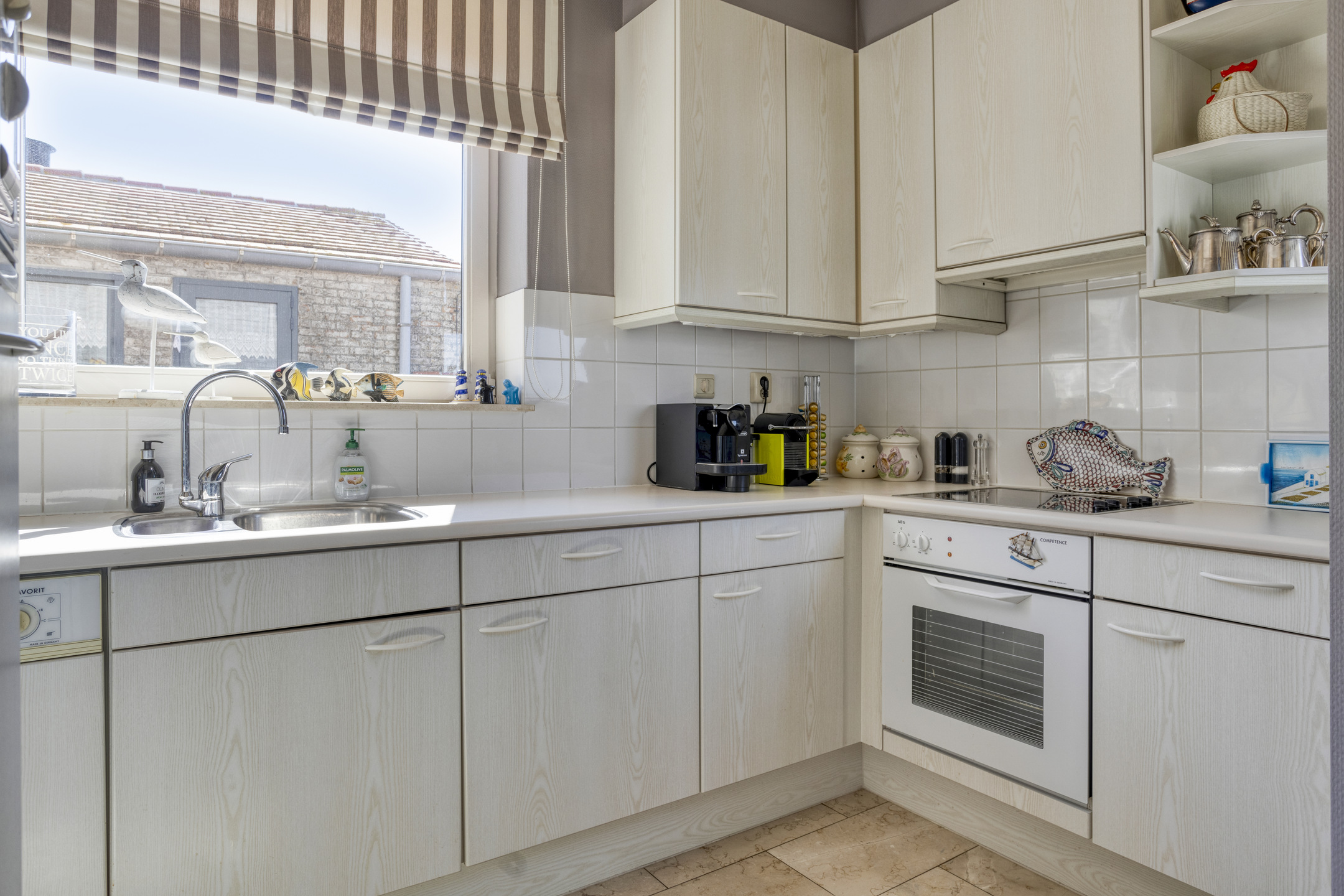 Sie betreten die Wohnung über einen geräumigen Flur mit einer separaten Toilette und einem Kleiderschrank. Vom Flur aus haben Sie Zugang zu allen Räumen des Hauses. Das helle und geräumige Wohnzimmer hat große Fenster, die für viel natürliches Licht sorgen. Über die Schiebetüren gelangen Sie auf die geräumige Dachterrasse, von der aus Sie einen herrlichen Blick auf die Westerschelde und die Landschaft von Zeeland haben. Die offene Küche schließt direkt an das Wohnzimmer an und ist komplett ausgestattet mit 4-Flammen-Ceranfeld, Dunstabzugshaube, Kombi-Backofen, Backofen, Kühlschrank mit Gefrierfach und Geschirrspüler.