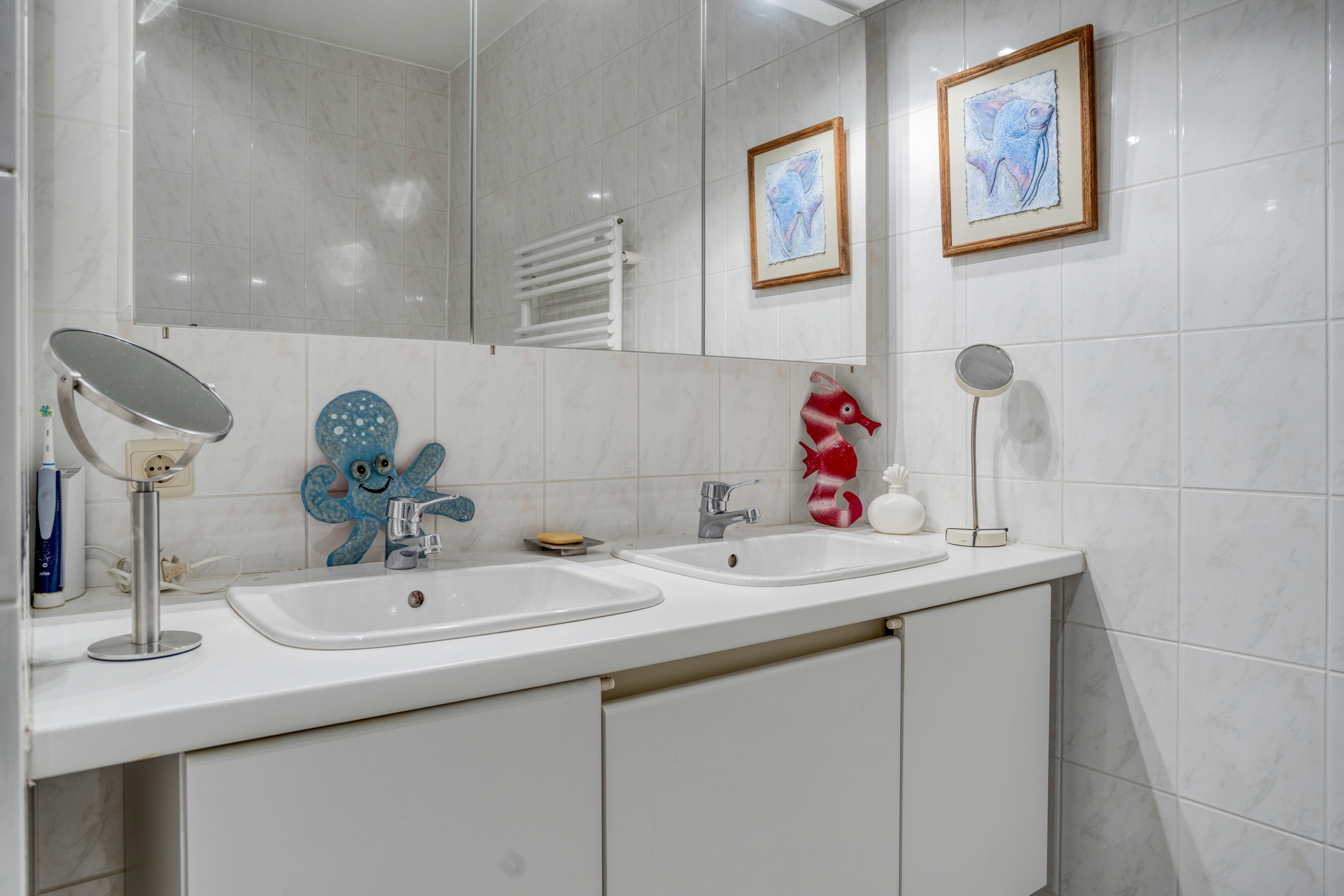 Die Wohnung verfügt über drei Schlafzimmer. Ein Schlafzimmer bietet über eine Schiebetür Zugang zum landseitigen Balkon. Das zweite Schlafzimmer (ebenfalls auf der Landseite) hat ein eigenes Bad mit Dusche und Waschbecken. Das Hauptschlafzimmer auf der Meerseite verfügt über ein Bad en-suite mit Doppelwaschbecken, Toilette und Badewanne.