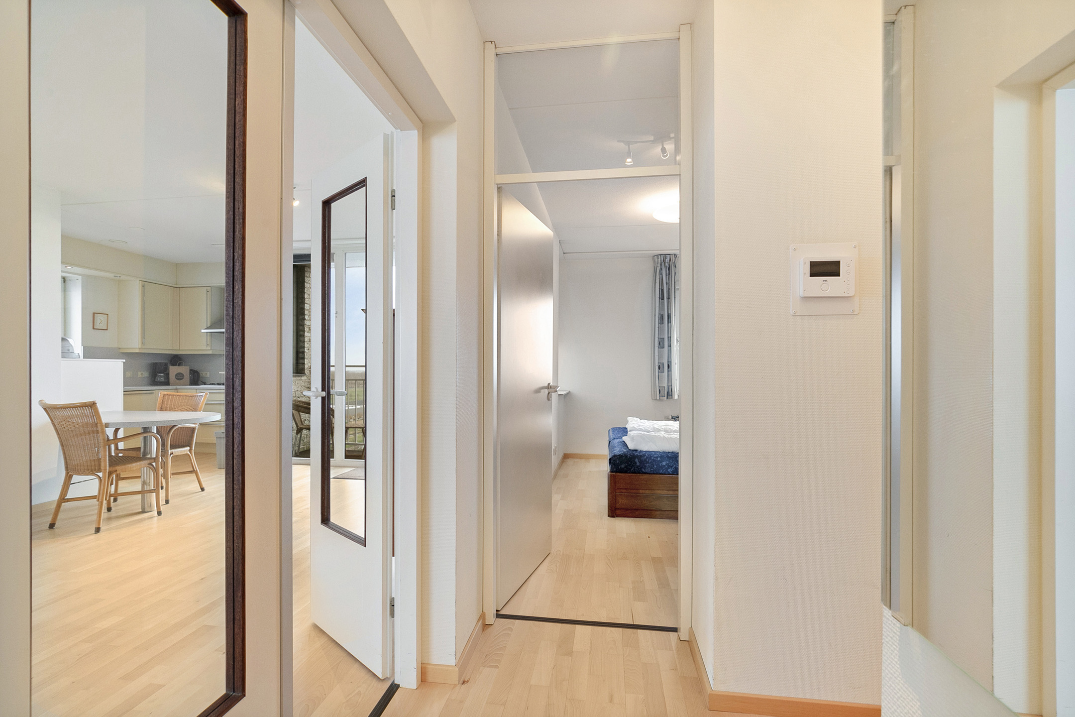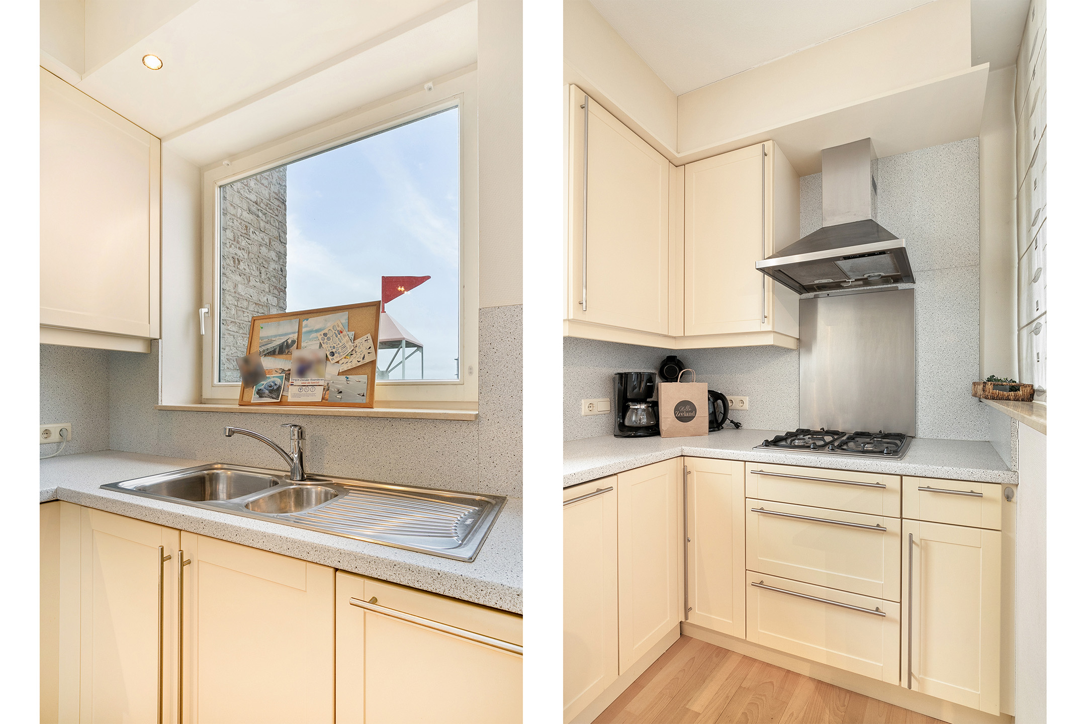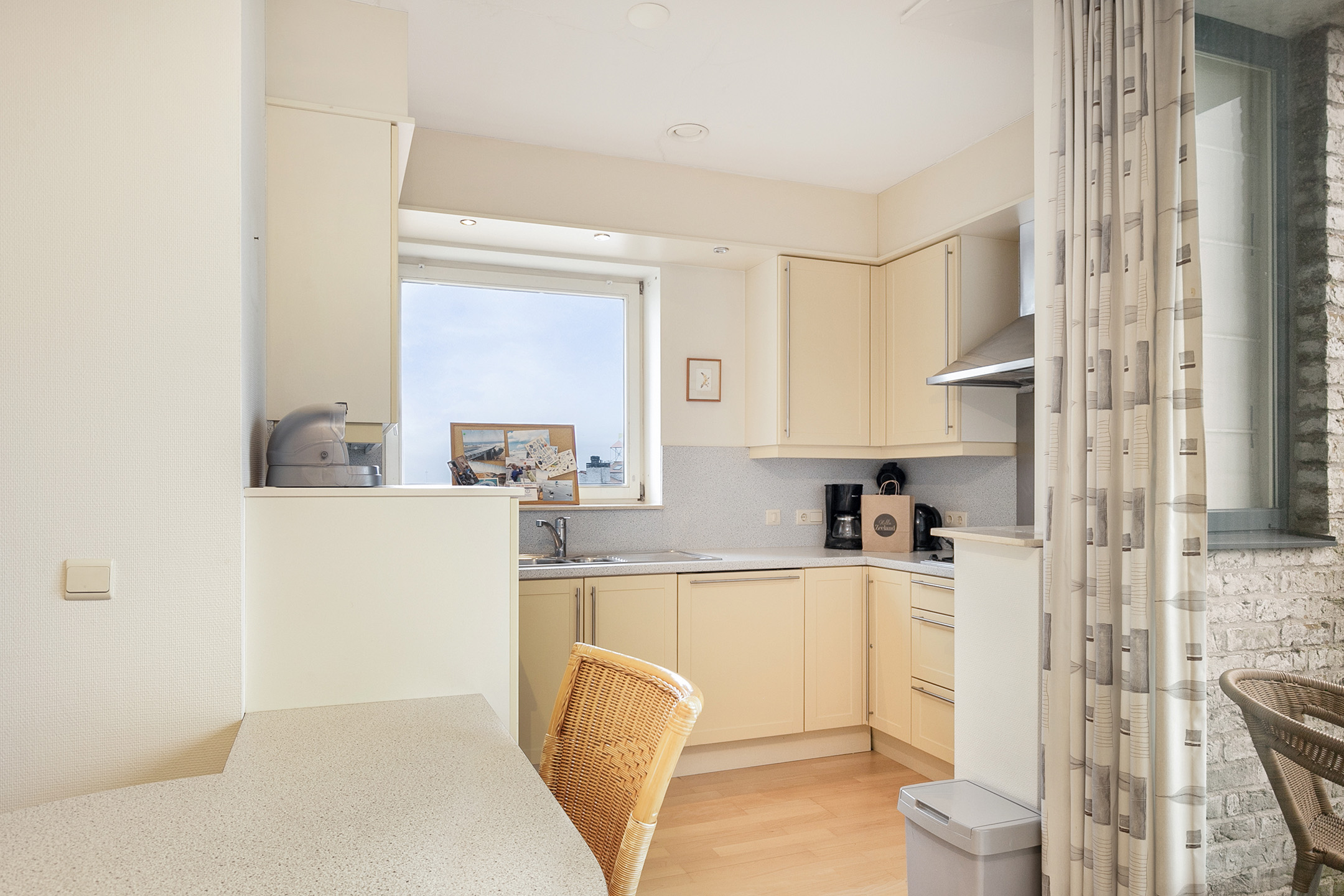 Beim Betreten der Wohnung gelangen Sie in den Flur, von dem aus Sie das geräumige Wohnzimmer mit zwei Balkonen betreten, einer auf der Meerseite und einer auf der Landseite. Das Wohnzimmer hat große Fenster, die Ihnen einen schönen Blick auf die Westerschelde und das Hinterland von Breskens bieten. Außerdem gibt es im Wohnzimmer eine offene Küche, die mit einem Gasherd, einer Dunstabzugshaube, einer Mikrowelle und einem Geschirrspüler ausgestattet ist. Die Wohnung hat auch ein Badezimmer und ein Schlafzimmer, vom Schlafzimmer aus haben Sie einen Blick auf das Hinterland von Breskens. Das Badezimmer hat eine Dusche, Waschbecken und Toilette.