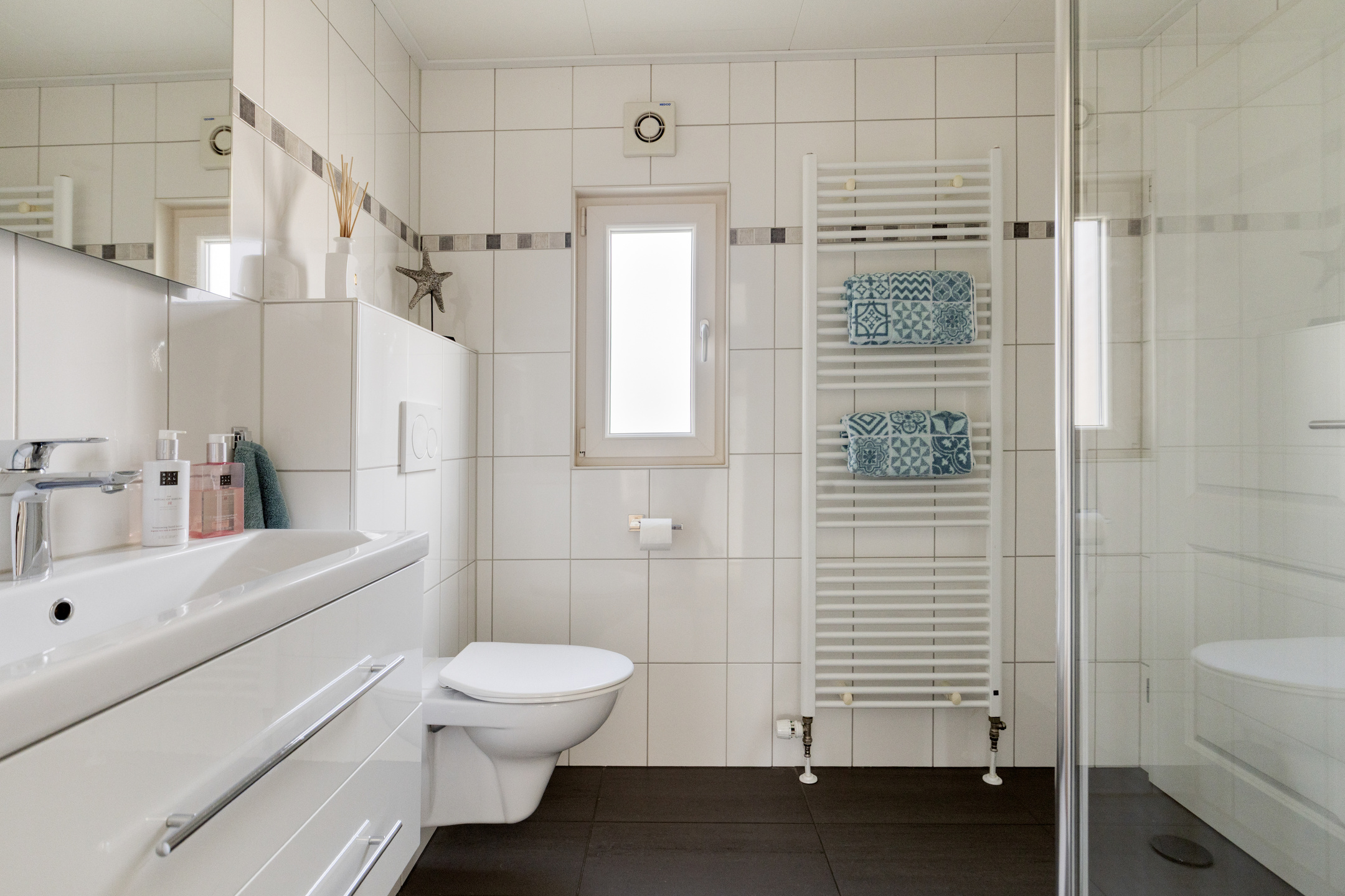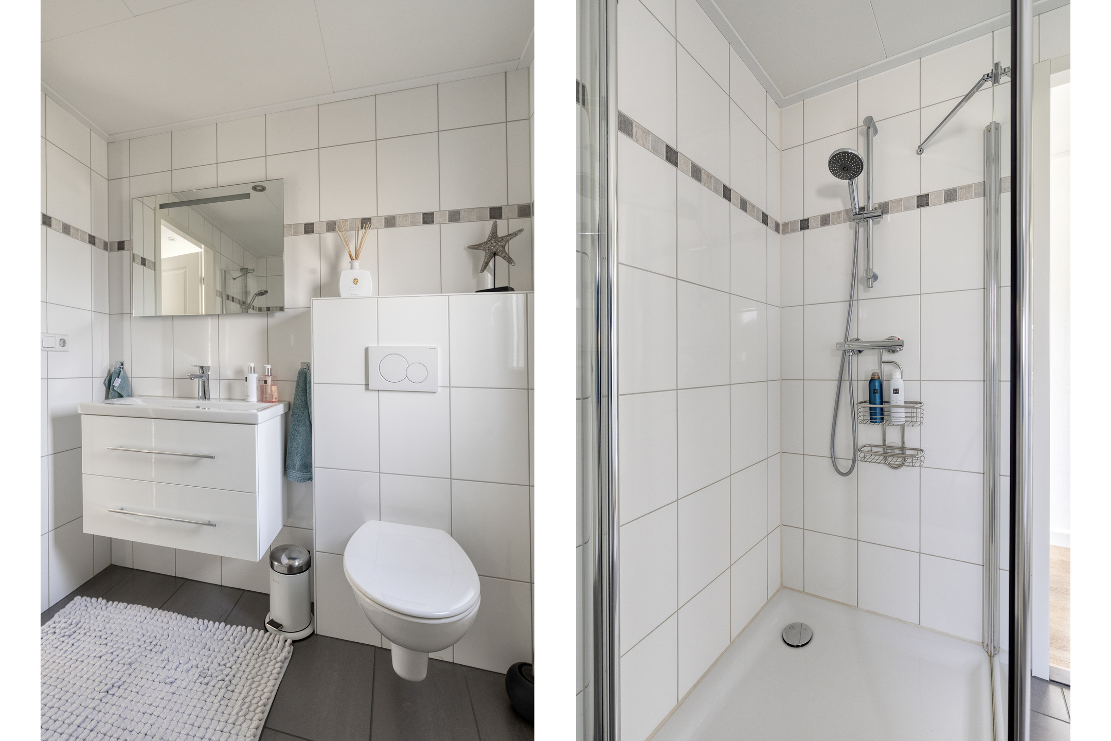 - Badkamervoorzieningen Toilet, wastafelmeubel, inloopdouche, wasmachineaansluiting