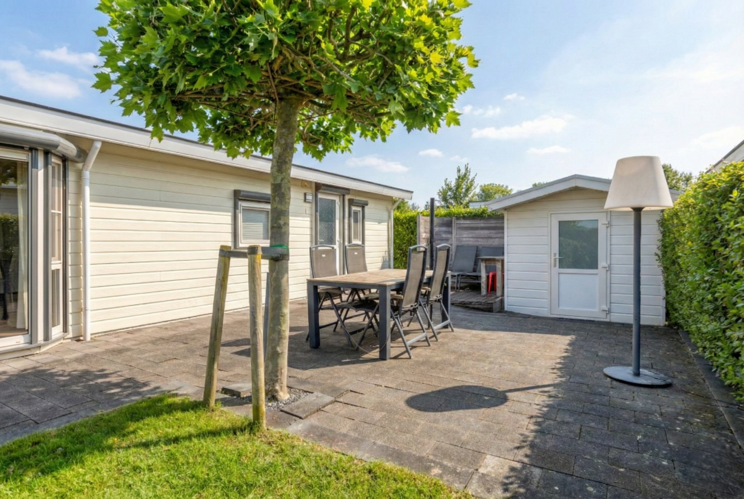 Der sonnige, pflegeleichte Garten in perfekter Südlage ist ein wunderbarer Ort, um das Leben im Freien zu genießen. Die großzügige Terrasse bietet ausreichend Platz für einen gemütlichen Essbereich oder eine bequeme Lounge-Garnitur. Nach einem Tag am Strand von Breskens können Sie sich unter der Außendusche erfrischen. Für Ihre Fahrräder oder Strandutensilien steht ein praktisches Gartenhaus zur Verfügung, und auf Ihrem eigenen Grundstück können Sie bequem parken. Ein schöner Pluspunkt ist, dass der Garten komplett umzäunt ist, ideal für Hundebesitzer.