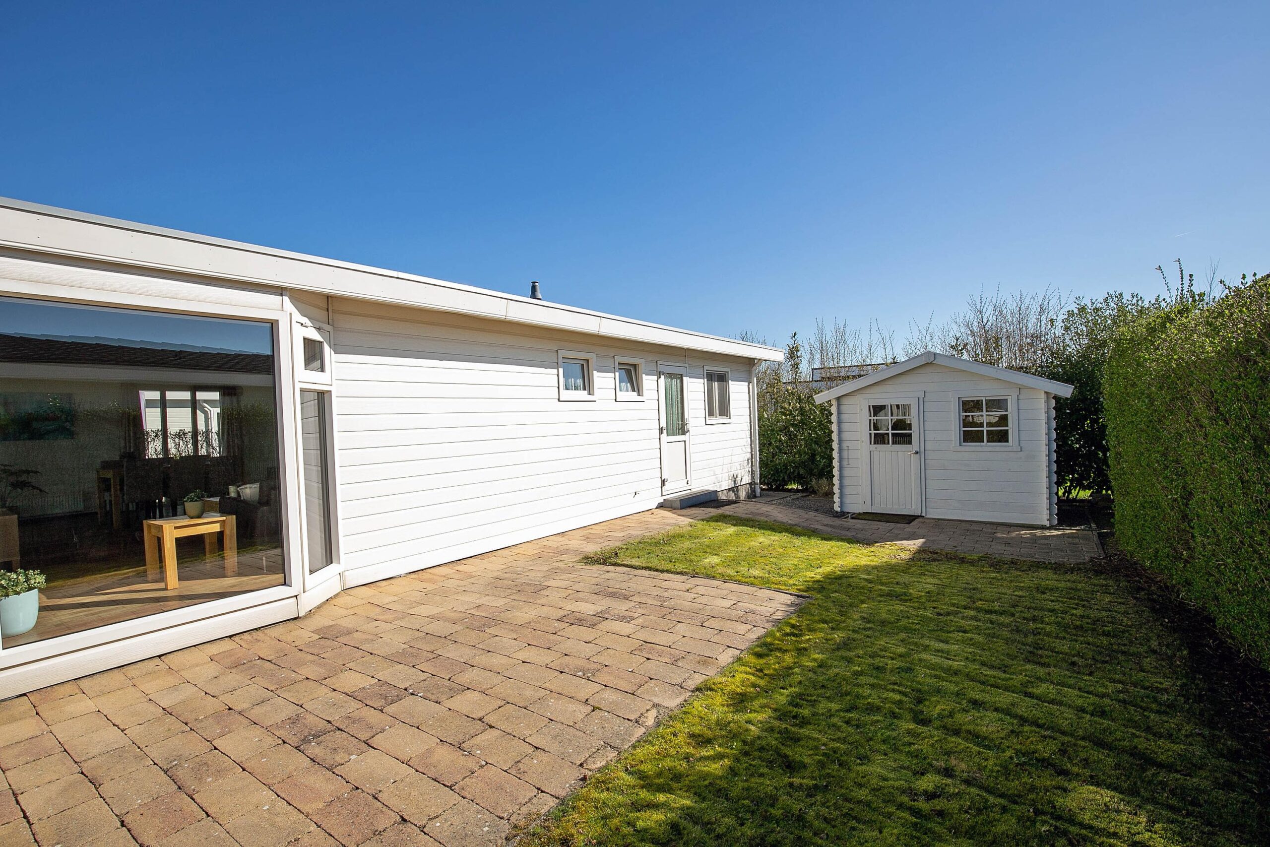 Garten: Das Chalet liegt auf einem großzügigen Grundstück und verfügt über eine Einfahrt mit ausreichend Platz zum Parken Ihres Autos. Die Terrasse unter der Veranda (vom Wohnzimmer aus zugänglich) ist nach Südwesten ausgerichtet, so dass Sie sowohl die Nachmittags- als auch die Abendsonne genießen können. Neben dem Chalet befindet sich ein Gartenhaus, das im Jahr 2022 erneuert wurde.