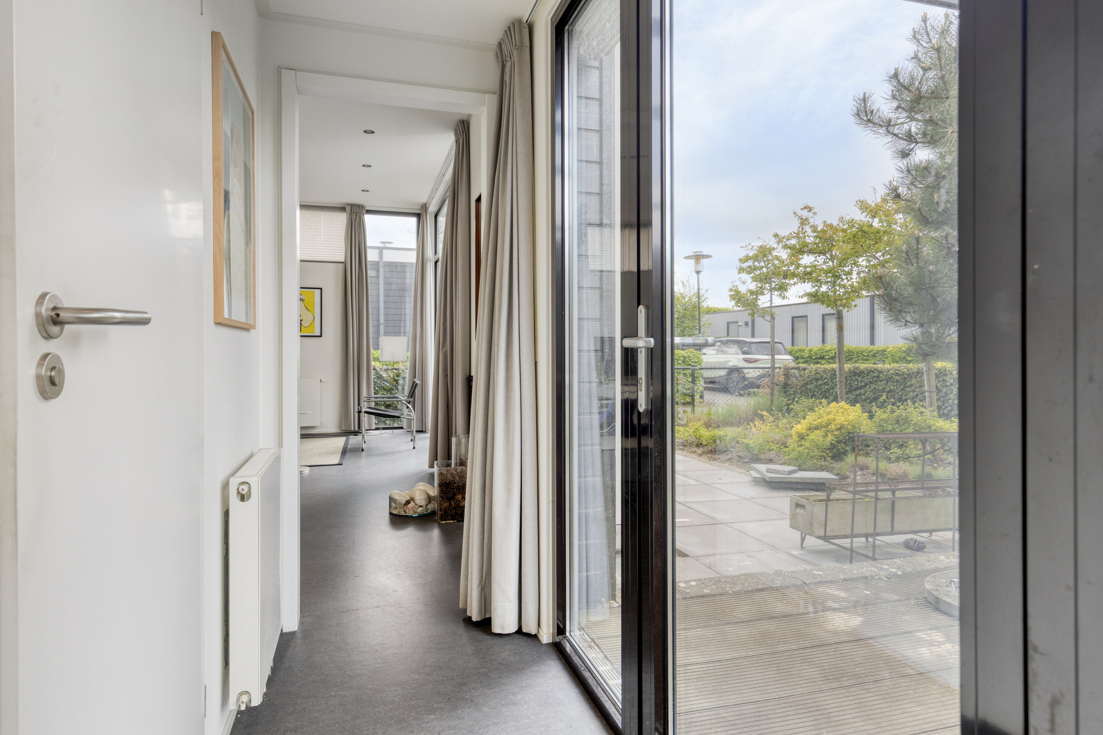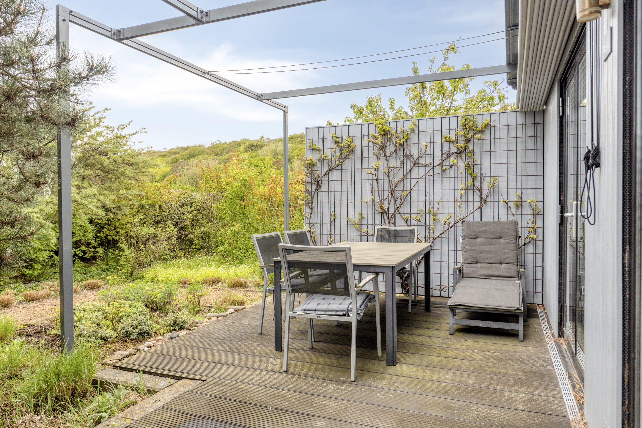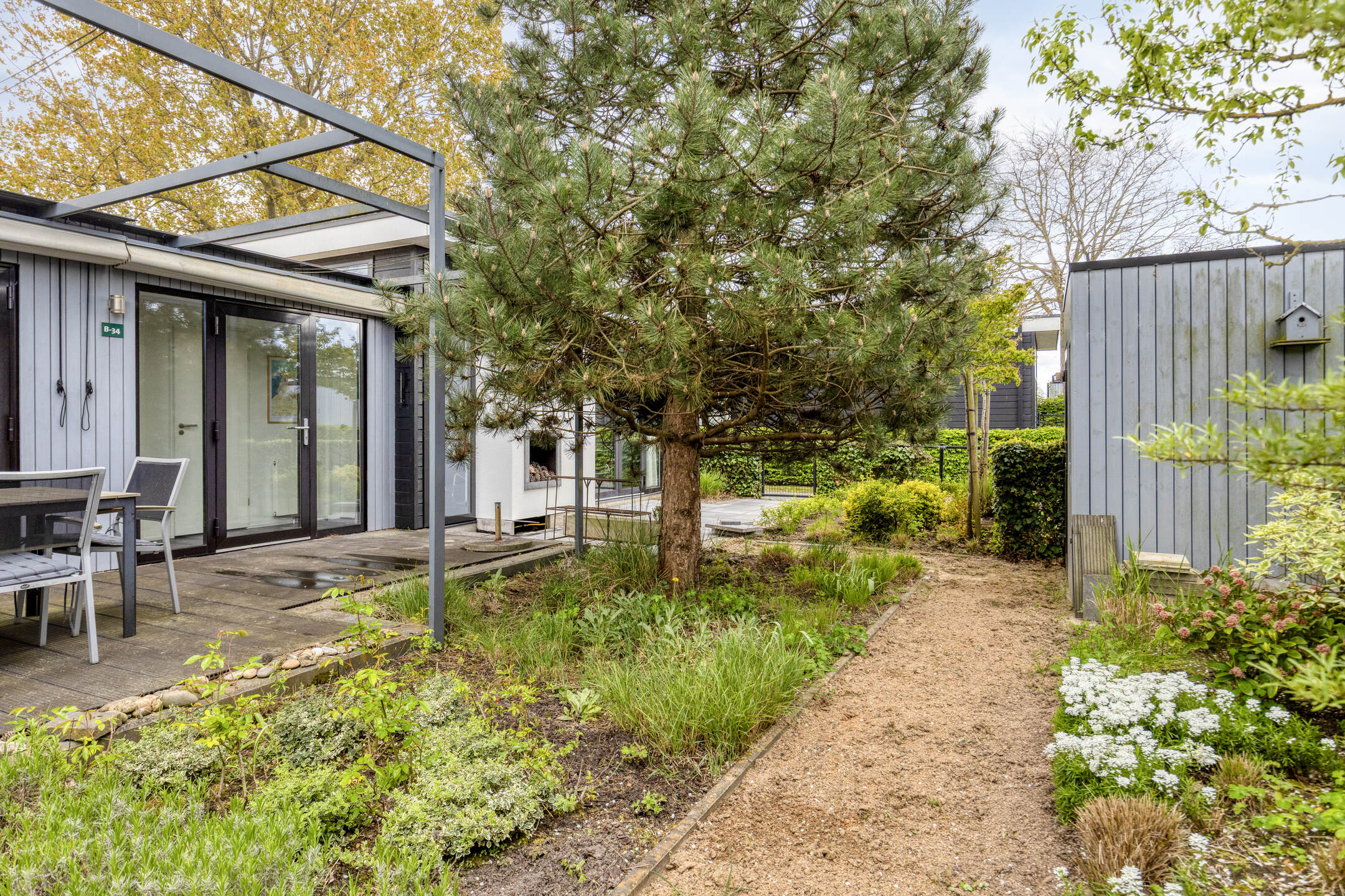 Der rundum gelegene, stimmungsvolle Garten bietet viel Privatsphäre und Sonnenlicht. Die erhöhte Terrasse bildet das Herzstück des Außenbereichs; deren Fliesen wurden 2025 komplett erneuert, was dem Garten ein frisches und gepflegtes Aussehen verleiht. Es gibt mehr als genug Platz für eine gemütliche Lounge- oder Essecke. Außerdem verfügt der Garten über ein praktisches, freistehendes Gartenhaus, das der ideale Ort für die sichere Aufbewahrung von Fahrrädern, Gartenmöbeln und Strandutensilien ist. Darüber hinaus verfügt das Haus über einen Parkplatz auf dem eigenen Grundstück, der sich vor dem Gartenhaus befindet und zusätzlich mit einem Kunststoffgitter gesichert ist.