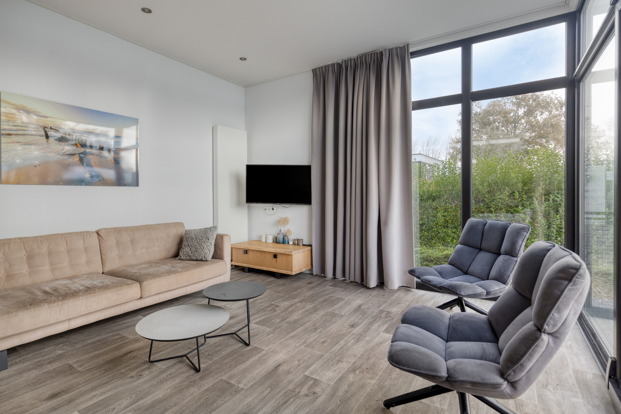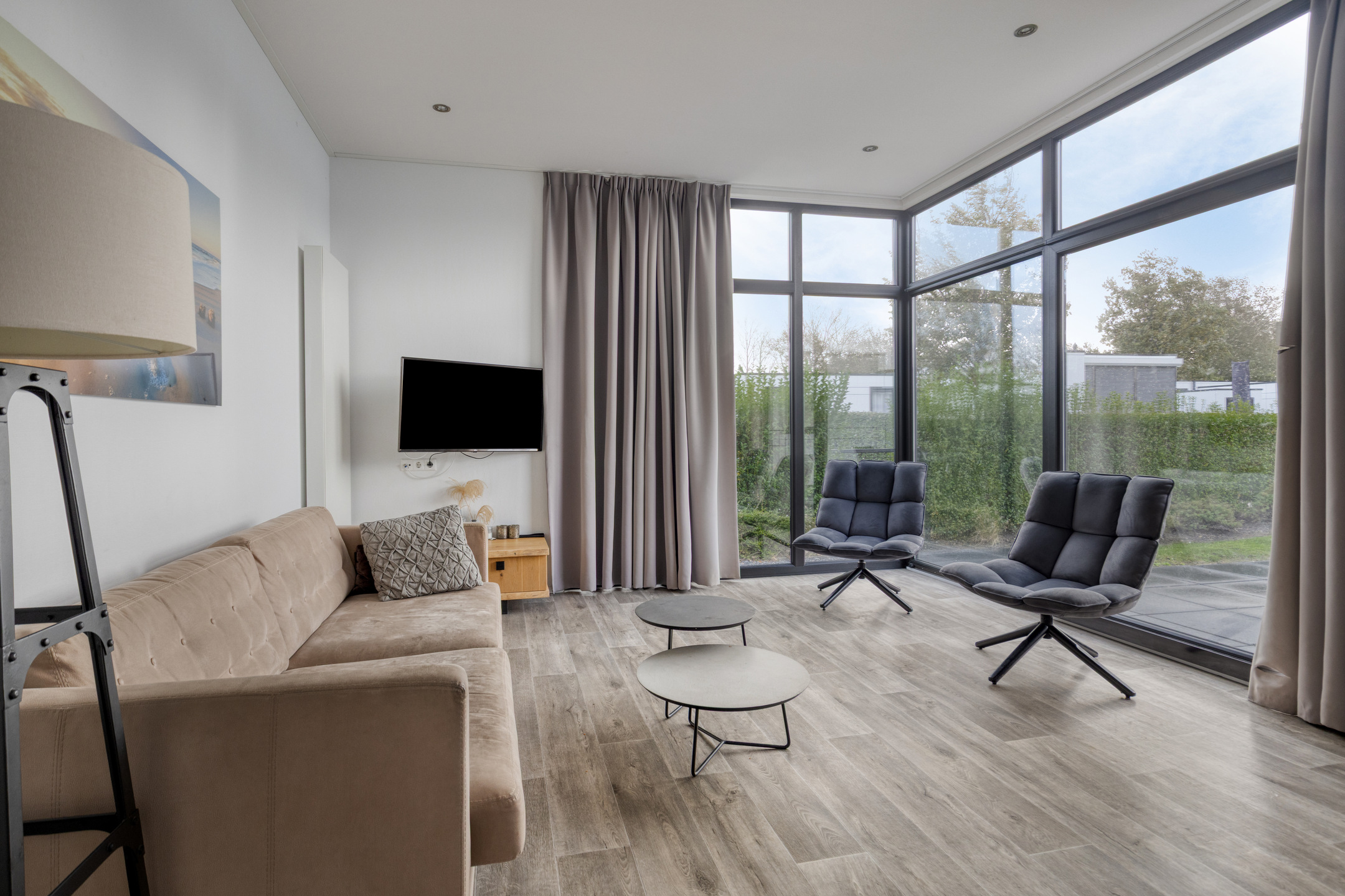 Das Chalet ist geschmackvoll eingerichtet und verfügt unter anderem über große Fensterfronten, ein helles und geräumiges Wohnzimmer mit elektrischem Kamin, eine voll ausgestattete Küche und drei komfortable Schlafzimmer. Die Lage in Laufnähe zum Meer und Strand macht dies zu einem idealen Ort für Ruhe und Entspannung. Darüber hinaus können Sie die verschiedenen Einrichtungen nutzen, die EuroParcs Schoneveld zu bieten hat.