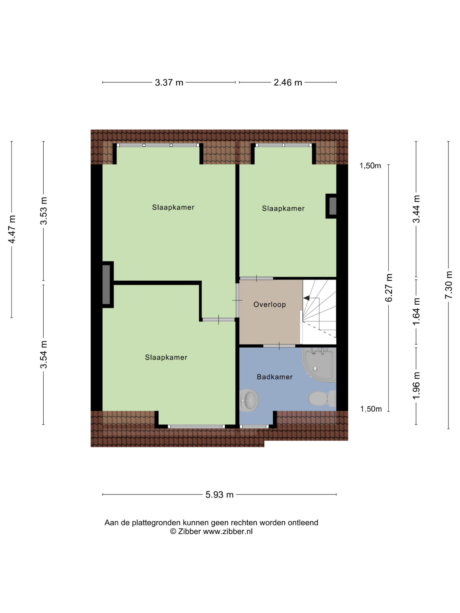 Via de trap in de hal bereikt u de verdieping. De ruime overloop geeft toegang tot drie ruime slaapkamers en de badkamer. De badkamer is voorzien van een douchecabine, wastafel en toilet.