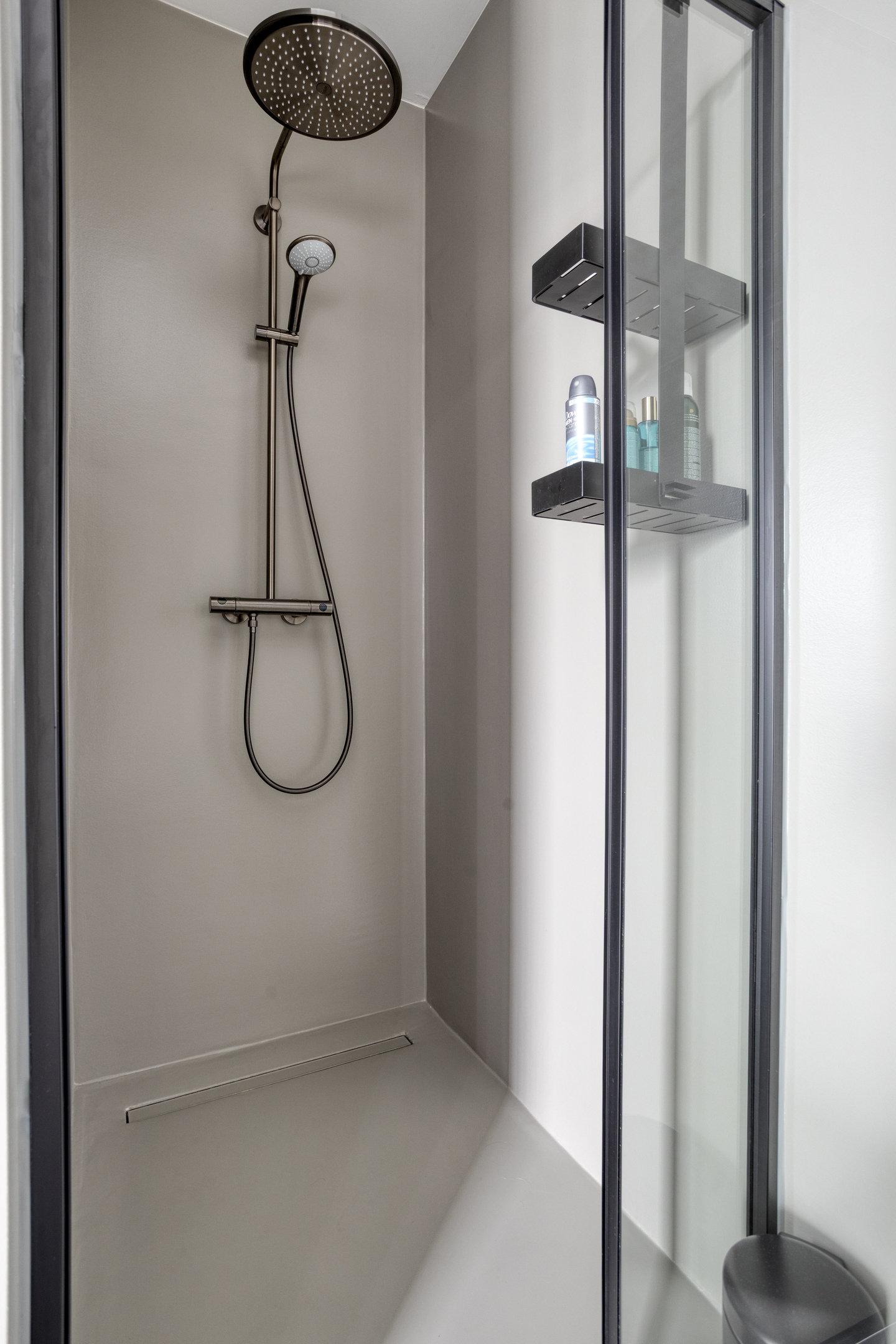 - Ausgestattet mit einem Gussboden mit Fußbodenheizung;