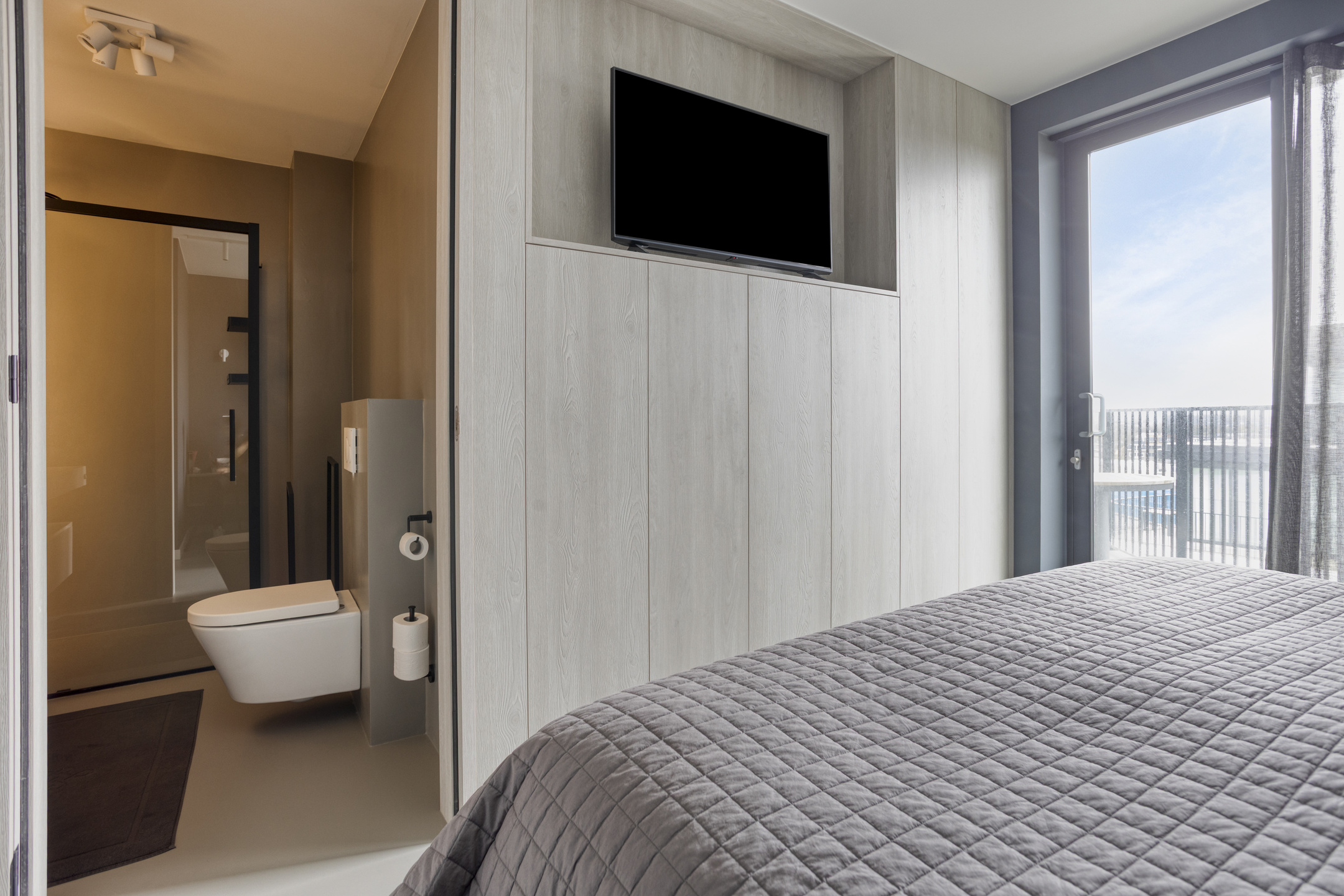 Durch die Schiebetüren im Wohnzimmer und in den Schlafzimmern gelangen Sie auf den geräumigen Balkon, der sich auf beiden Seiten der Wohnung befindet. So finden Sie immer einen sonnigen oder geschützten Platz, um den weiten Blick über den Strand von Breskens und die Westerschelde zu genießen.