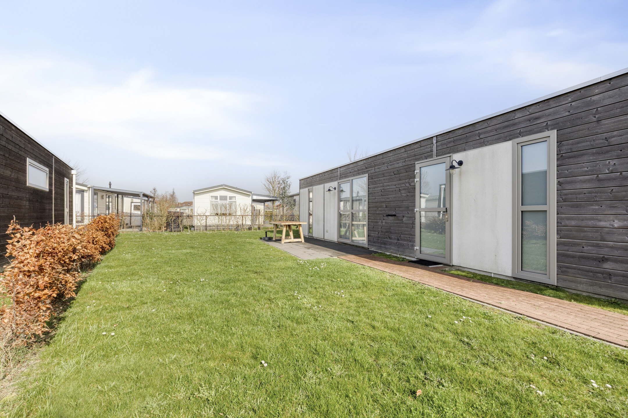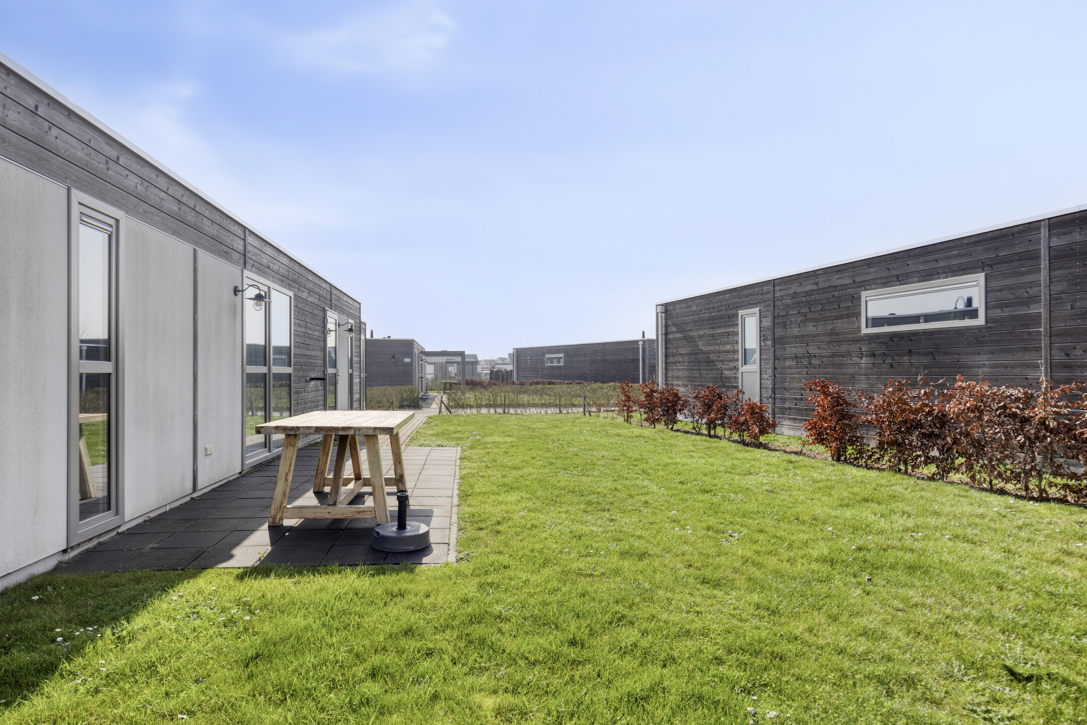Im Außenbereich finden Sie eine herrliche, nach Westen ausgerichtete Terrasse. Dank dieser günstigen Lage können Sie hier bis in die späten Abendstunden die Sonne genießen. Das Grundstück bietet ausreichend Platz für gemütliche Grillabende mit Freunden oder einen ruhigen Moment mit einem guten Buch. Für Ihren Komfort gibt es einen praktischen Abstellraum mit einem Anschluss für die Waschmaschine; der ideale Ort, um Fahrräder oder Strandutensilien unterzustellen.