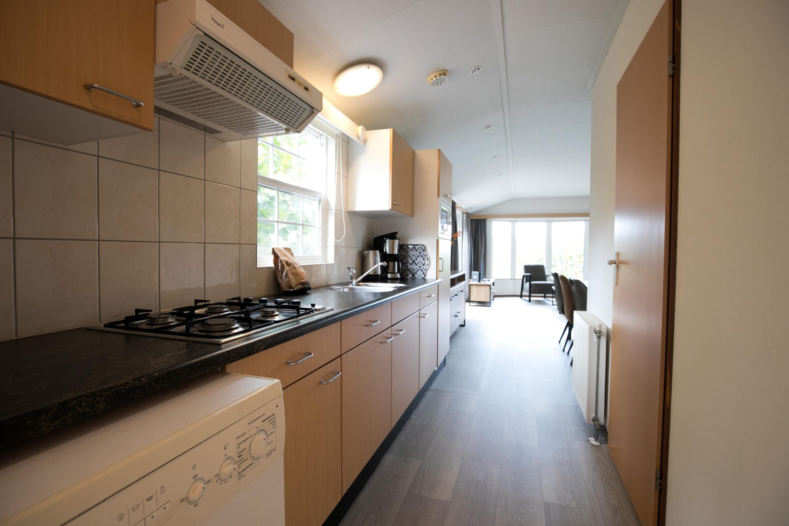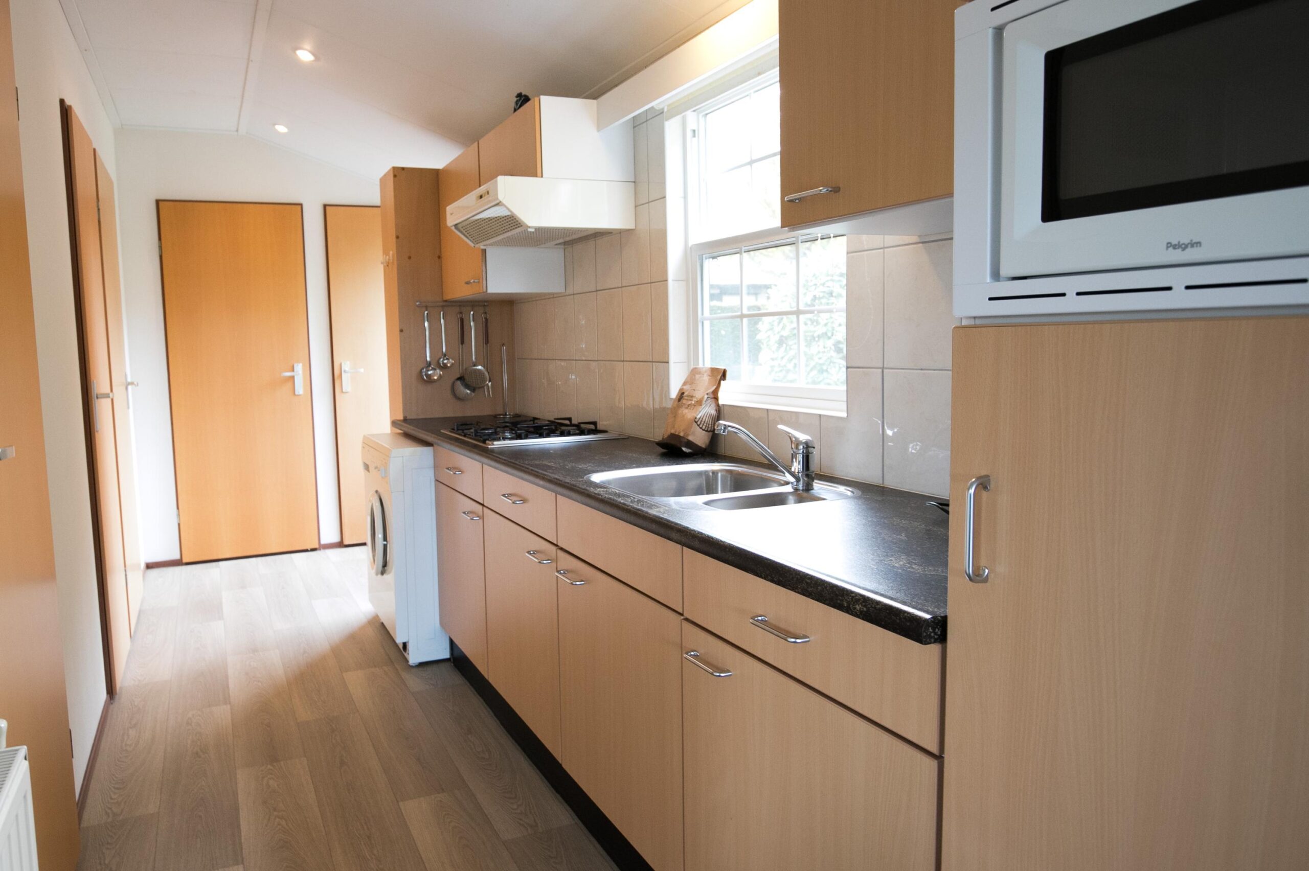 Beim Betreten finden Sie die Halle, die Zugang zu den verschiedenen Räumen dieses Bungalows bietet. Das geräumige Wohnzimmer hat große Fenster und eine Schiebetür, die zum Garten führt, so dass Sie tagsüber die Sonne genießen können. Angrenzend an das Wohnzimmer finden Sie die offene Küche, die mit einem 4-Flammen-Herd, Dunstabzug, Mikrowelle, Kühlschrank und Waschmaschinenanschluss ausgestattet ist. Das Badezimmer hat eine begehbare Dusche, ein Waschbecken und eine Toilette. Außerdem gibt es zwei geräumige Schlafzimmer im Chalet.